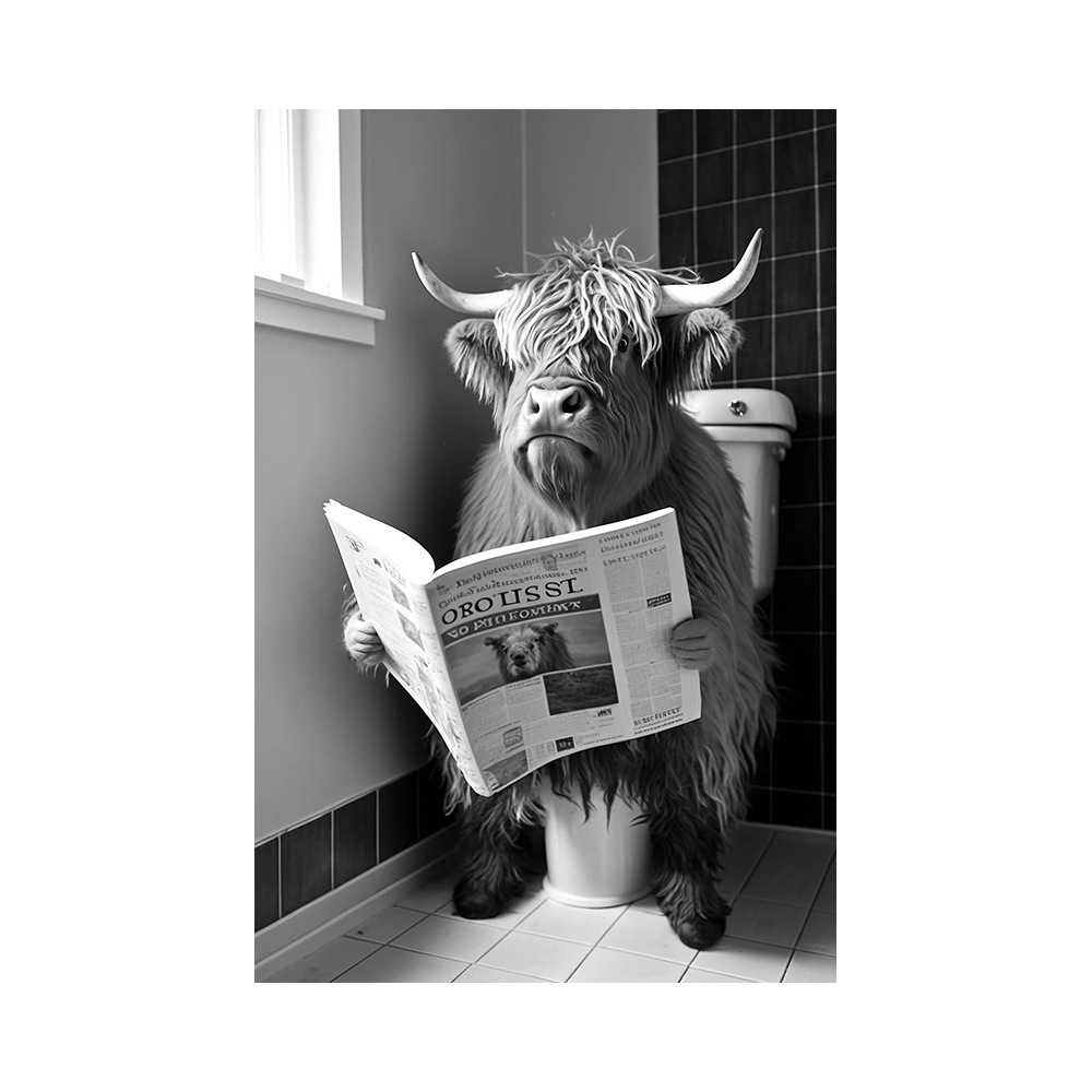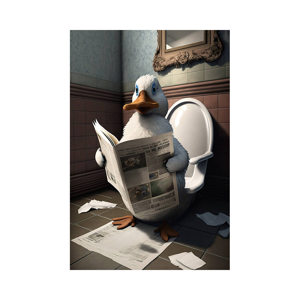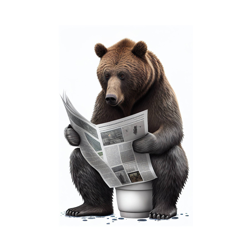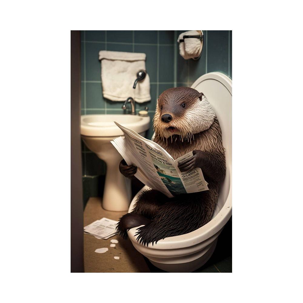 욕실 유머 동물 벽 장식 곰 개 호랑이 화장실에 앉아 독서 신문 아트 인쇄 캔버스 그림