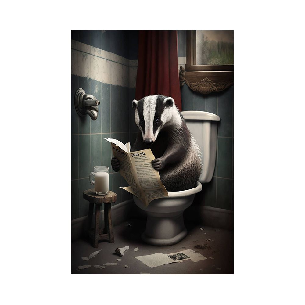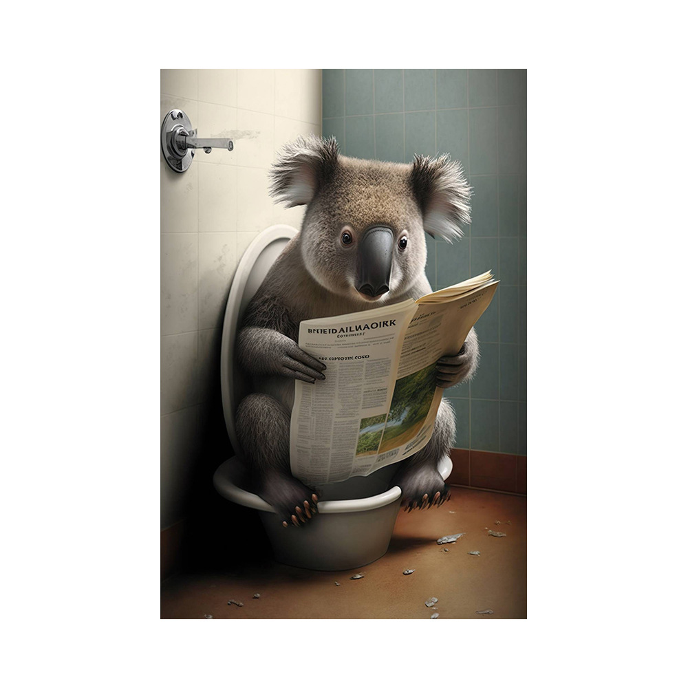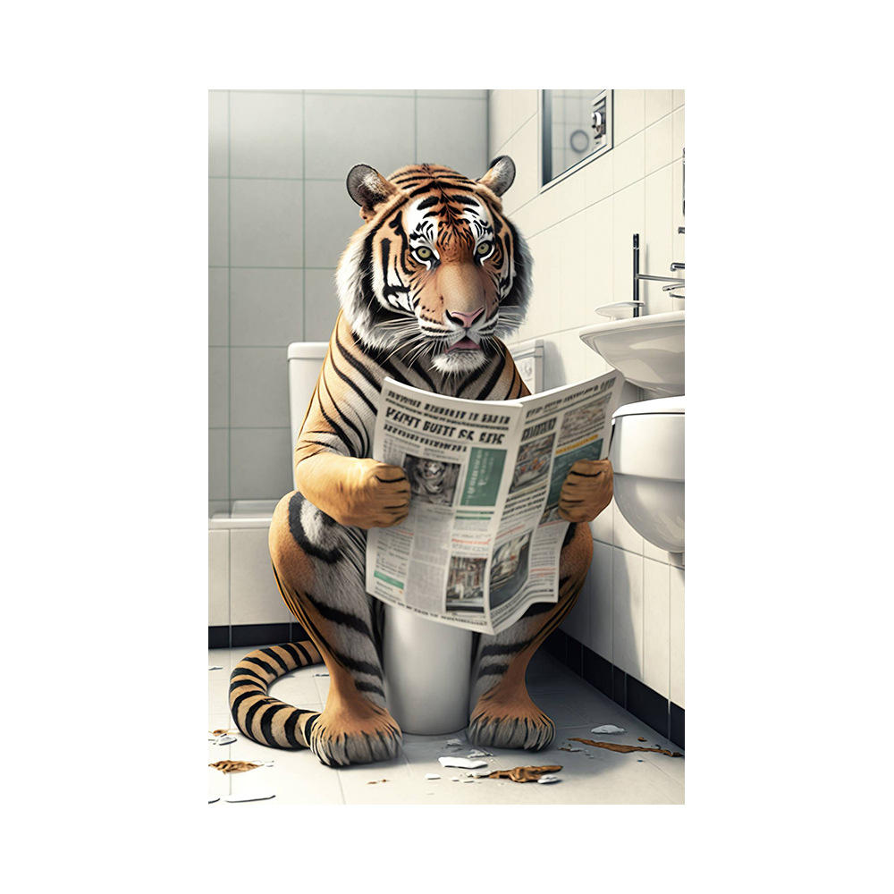 욕실 유머 동물 벽 장식 곰 개 호랑이 화장실에 앉아 독서 신문 아트 인쇄 캔버스 그림스토어 가기