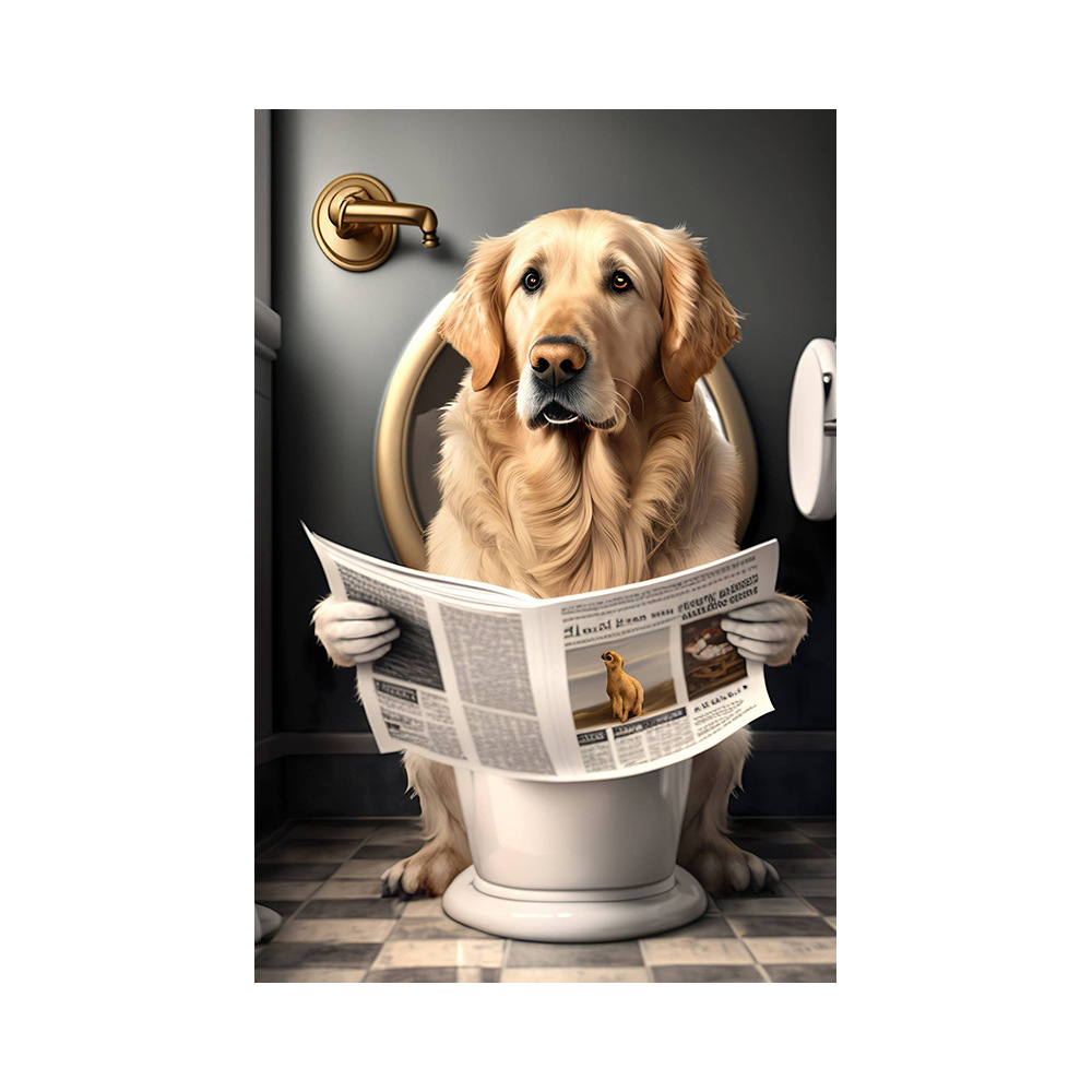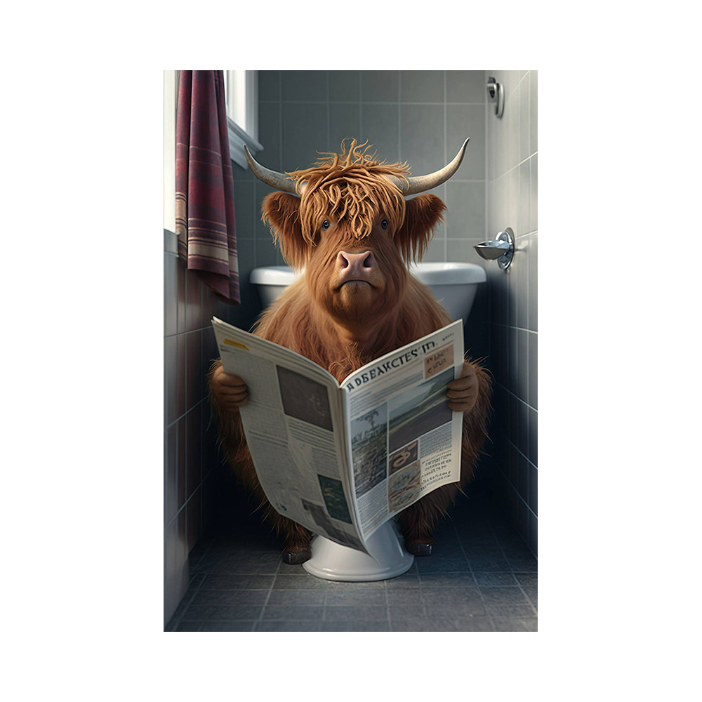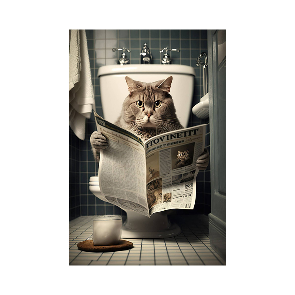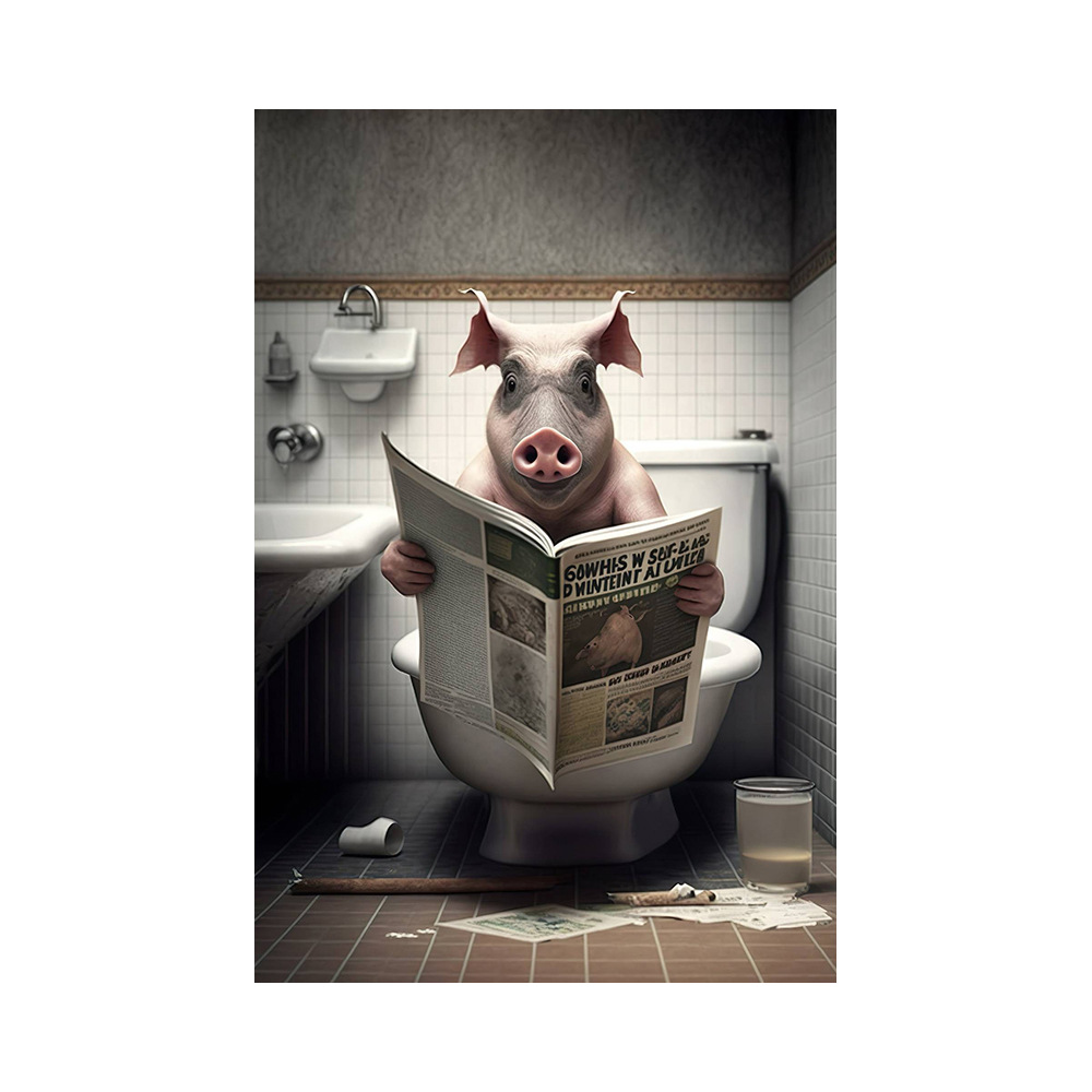욕실 유머 동물 벽 장식 곰 개 호랑이 화장실에 앉아 독서 신문 아트 인쇄 캔버스 그림스토어 가기