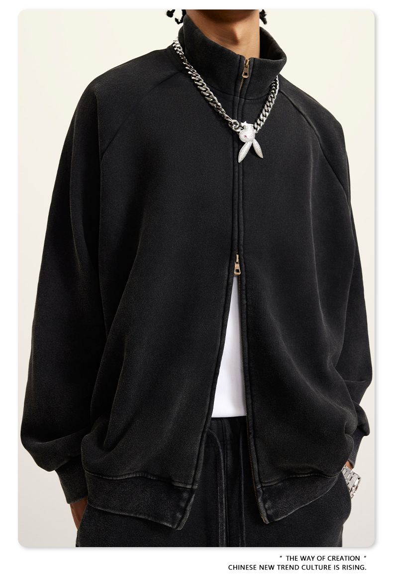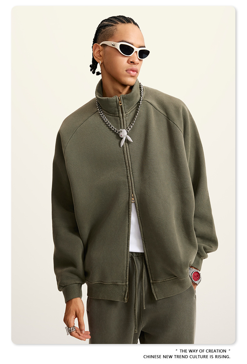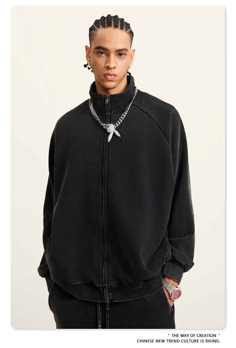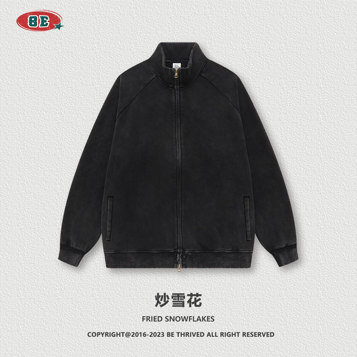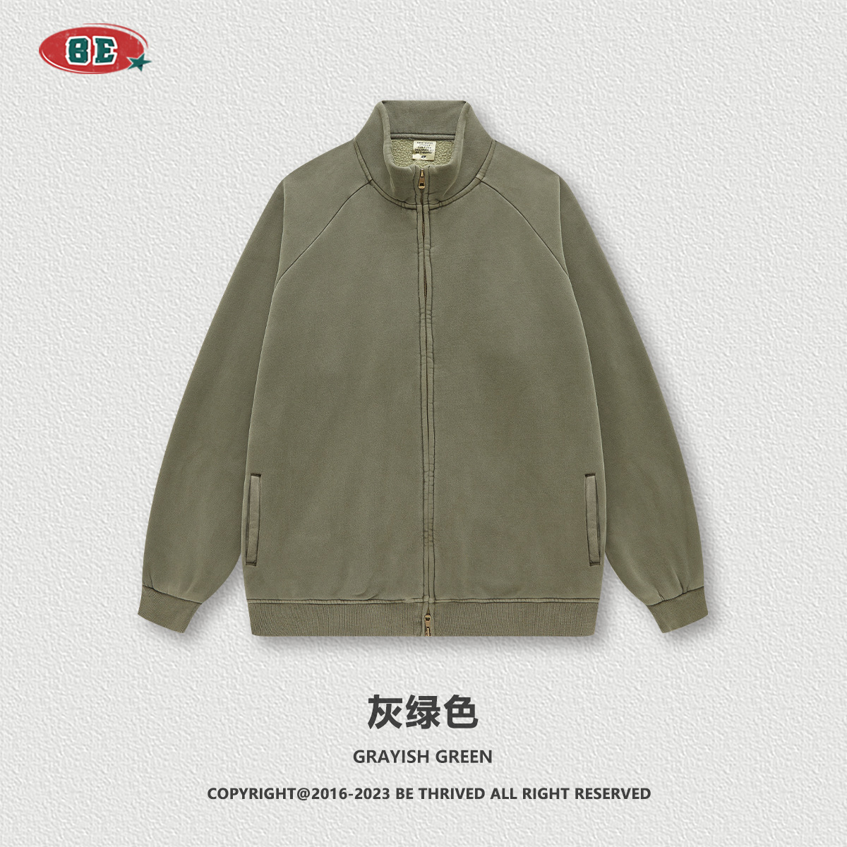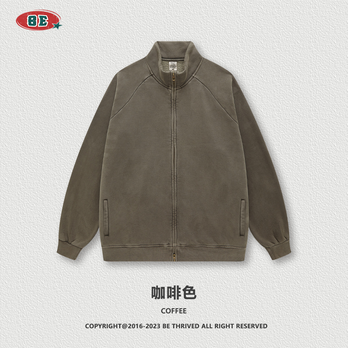 BE 남성 2025 가을, 겨울 트렌디 브랜드 헤비급 레트로 워시 라글란 지퍼 자켓 남성용 루즈 벨벳 대형 자켓스토어 가기