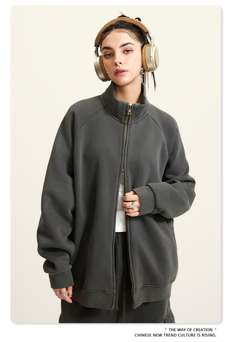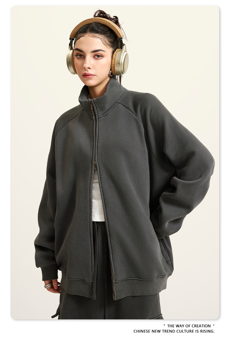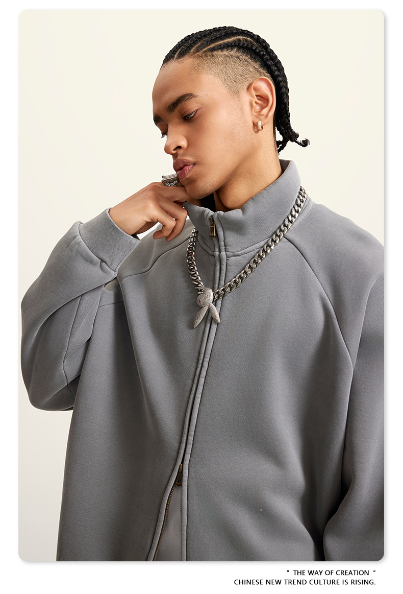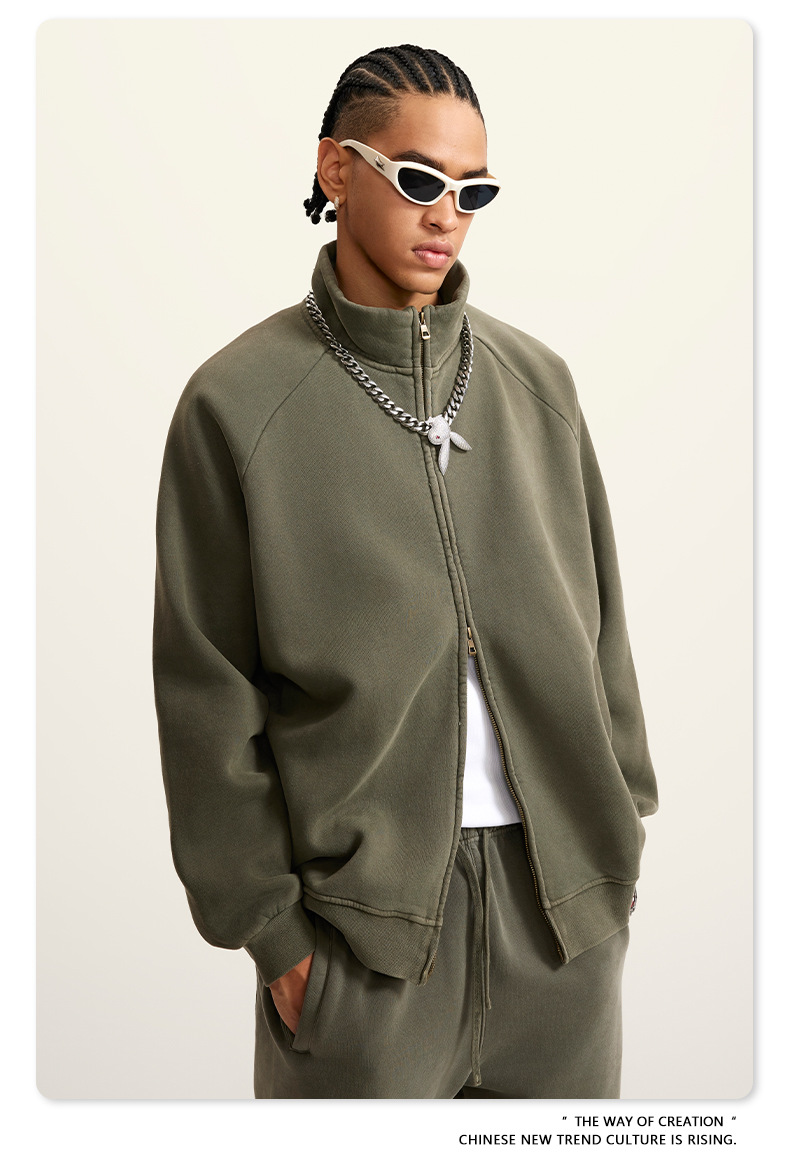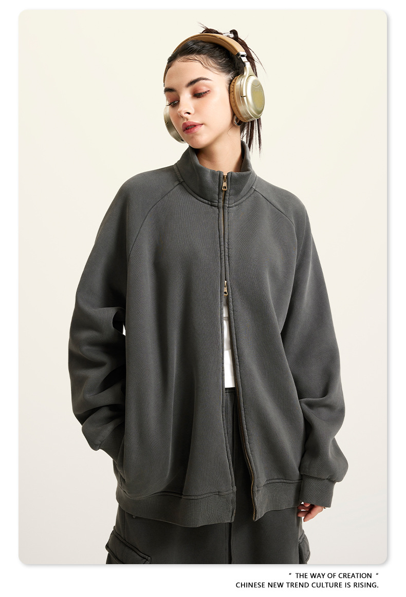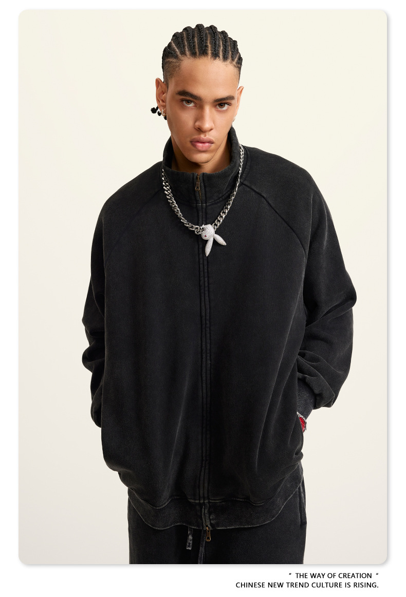 BE 남성 2025 가을, 겨울 트렌디 브랜드 헤비급 레트로 워시 라글란 지퍼 자켓 남성용 루즈 벨벳 대형 자켓스토어 가기