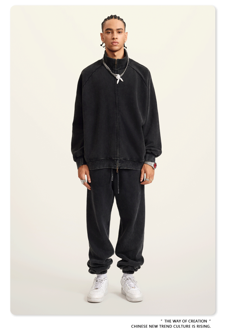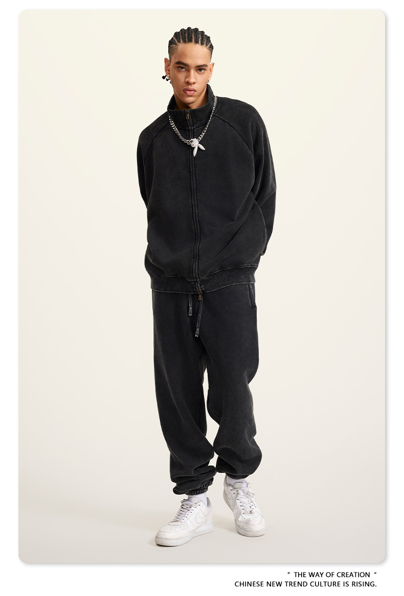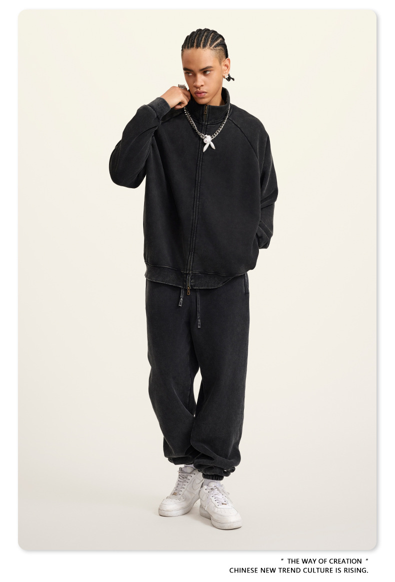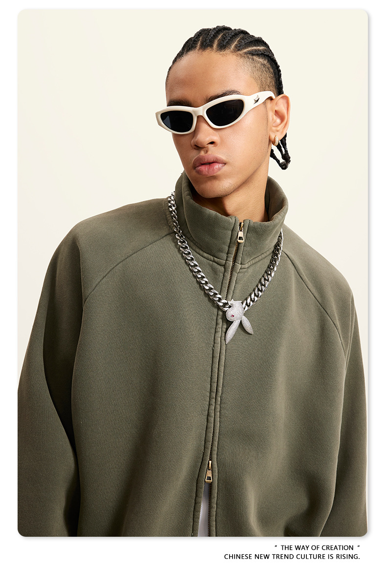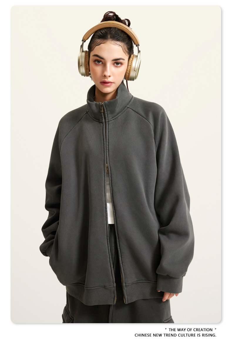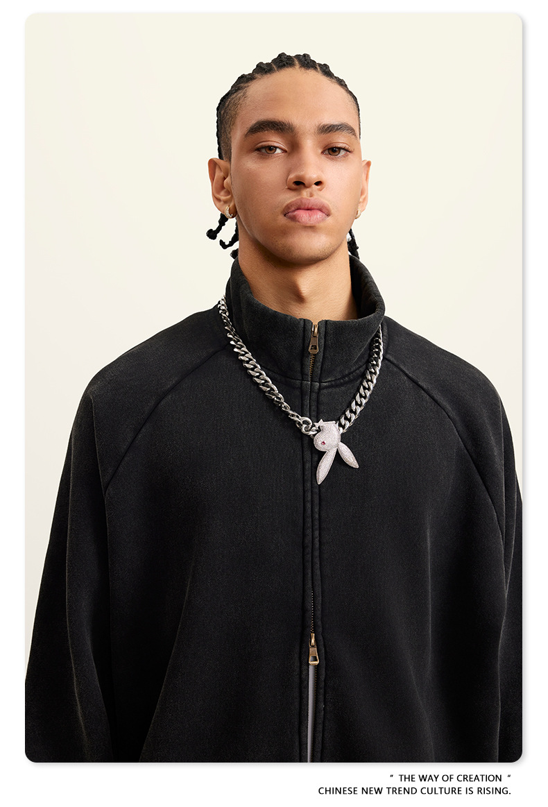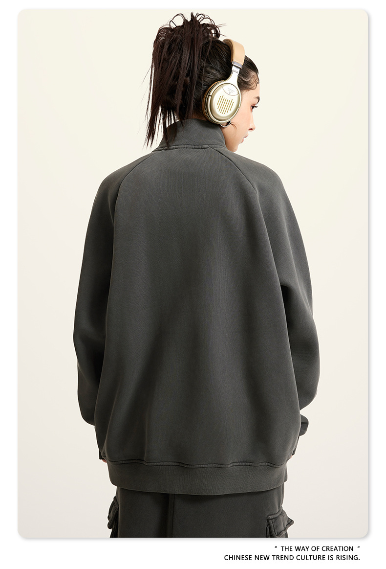 BE 남성 2025 가을, 겨울 트렌디 브랜드 헤비급 레트로 워시 라글란 지퍼 자켓 남성용 루즈 벨벳 대형 자켓스토어 가기