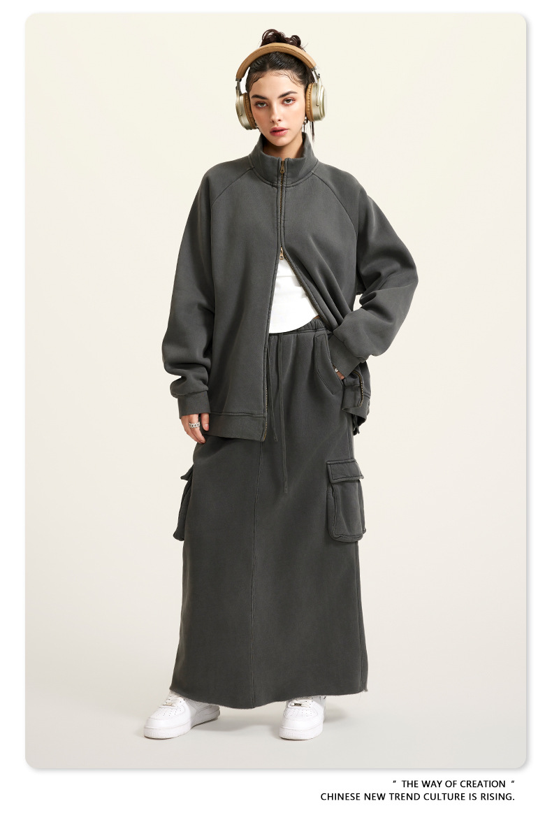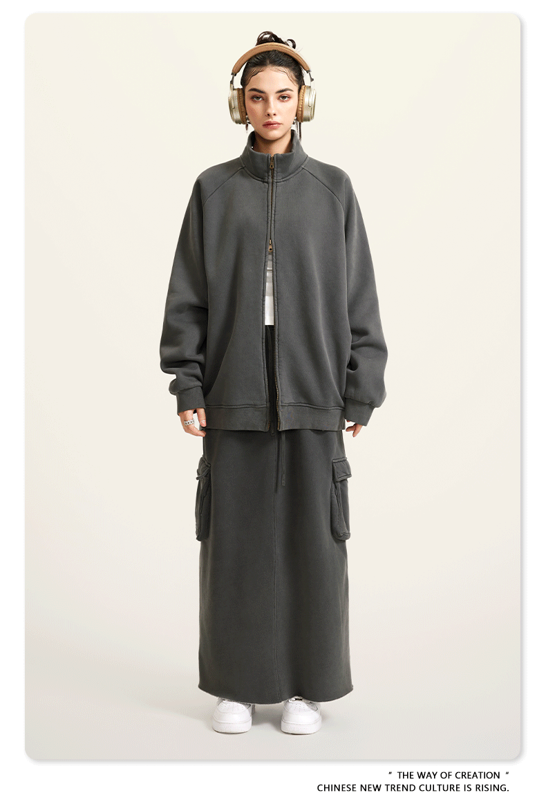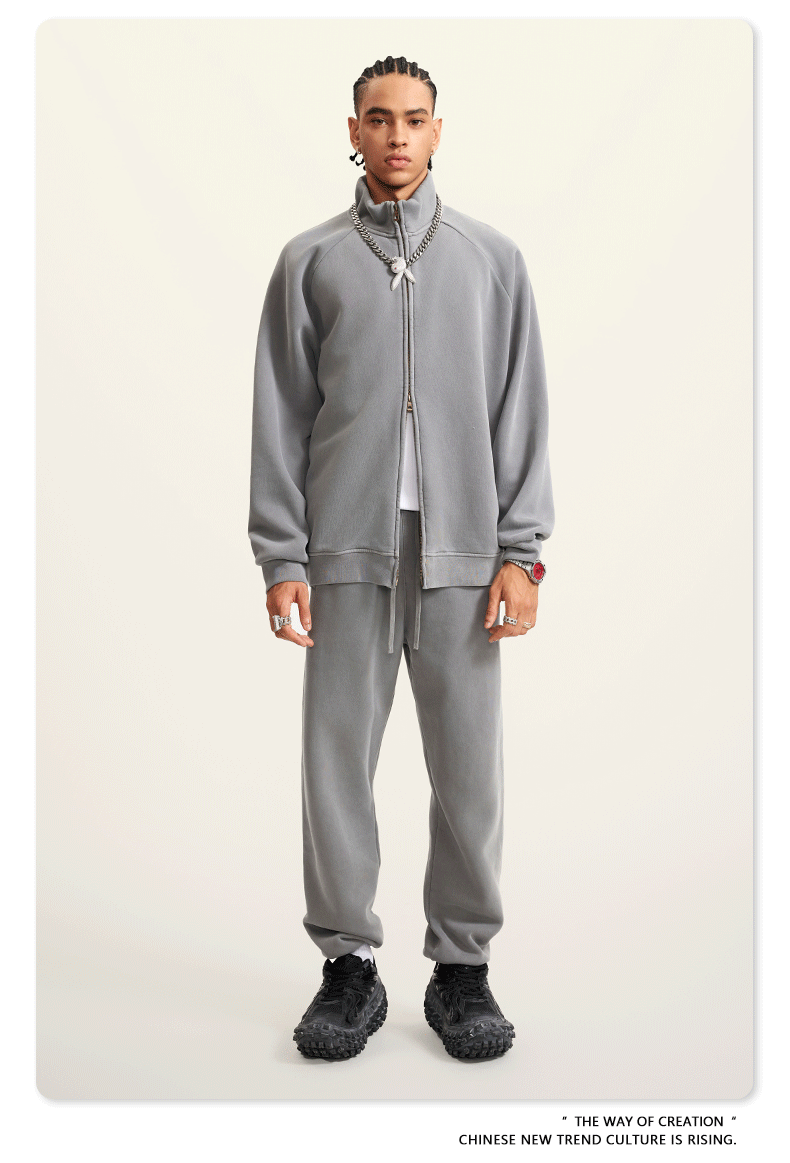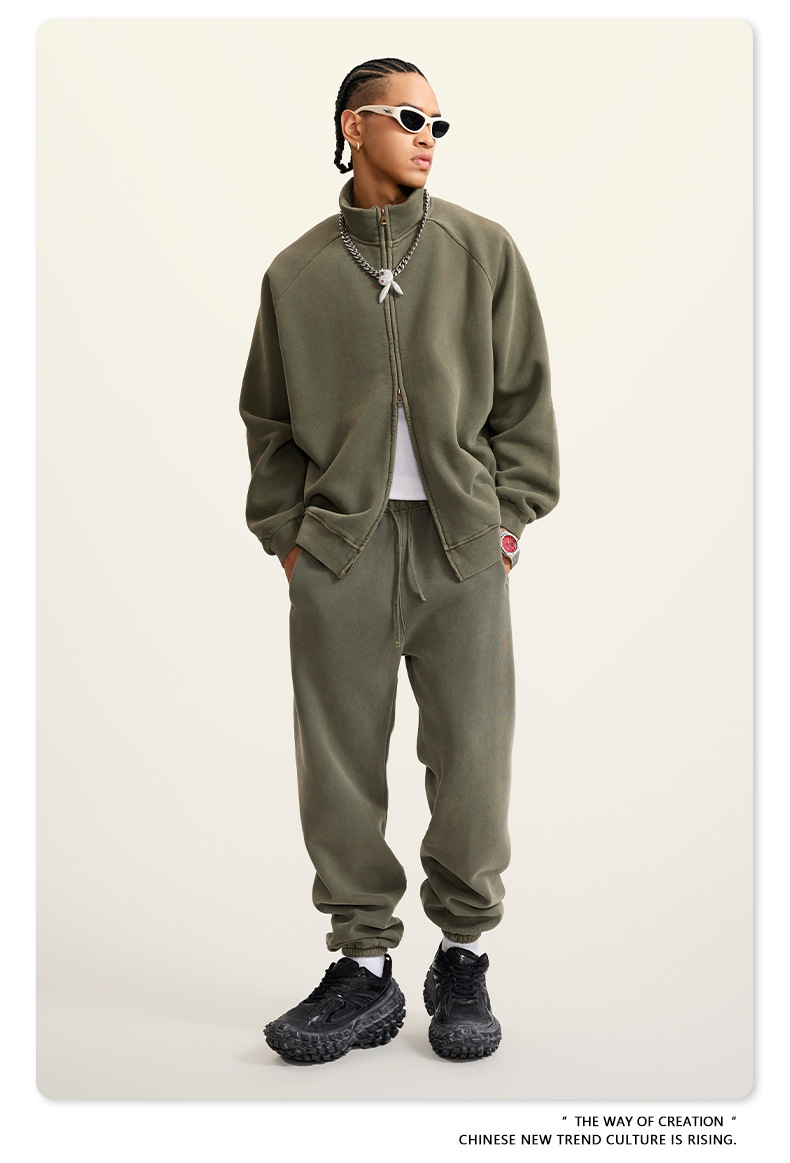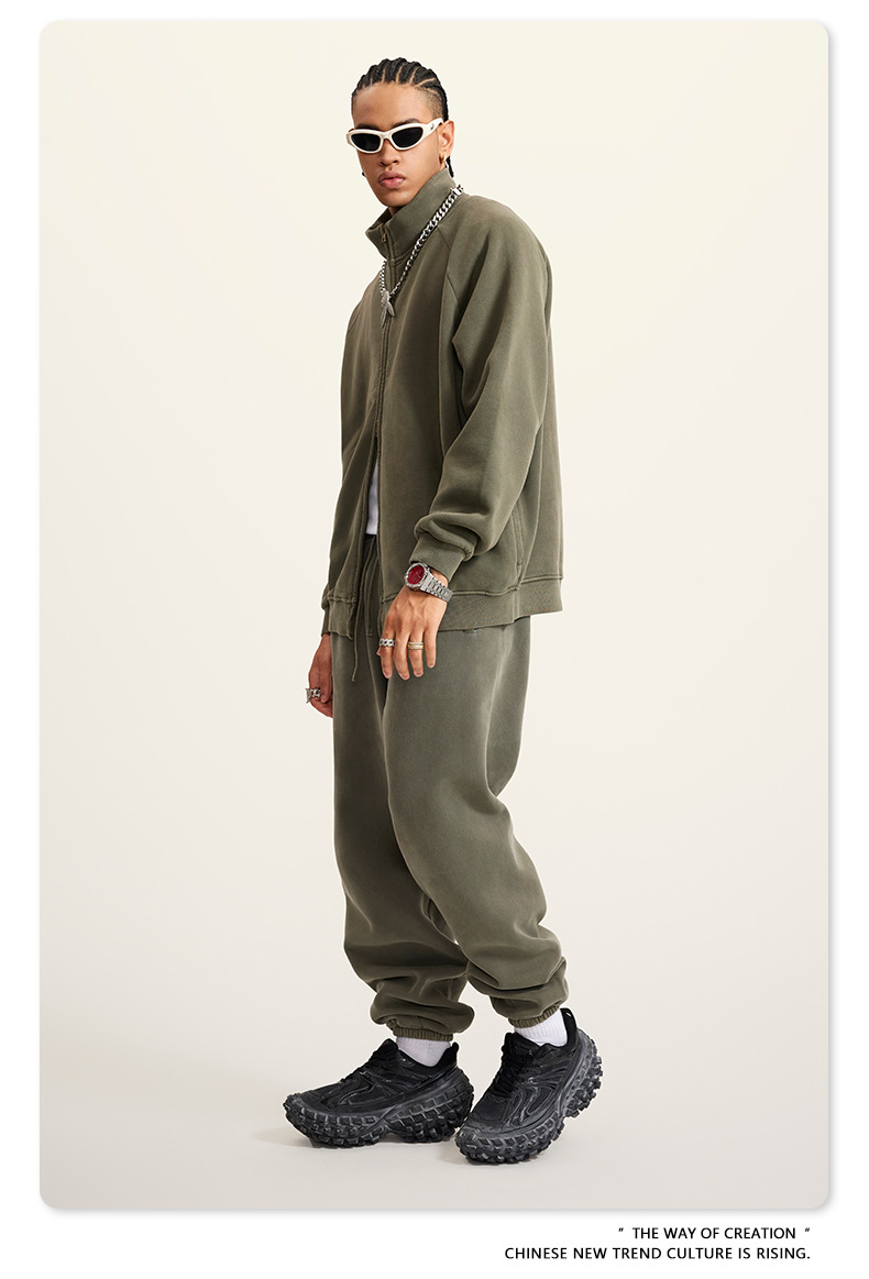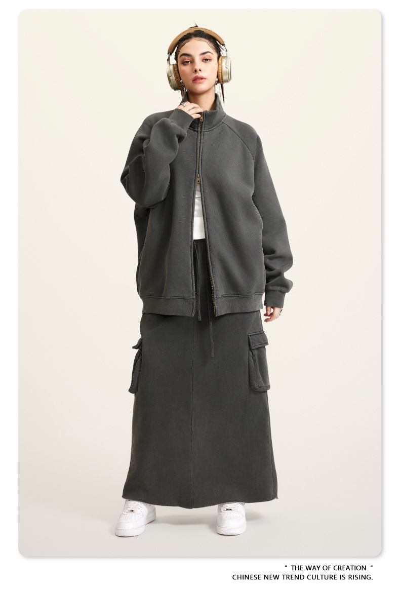 BE 남성 2025 가을, 겨울 트렌디 브랜드 헤비급 레트로 워시 라글란 지퍼 자켓 남성용 루즈 벨벳 대형 자켓스토어 가기