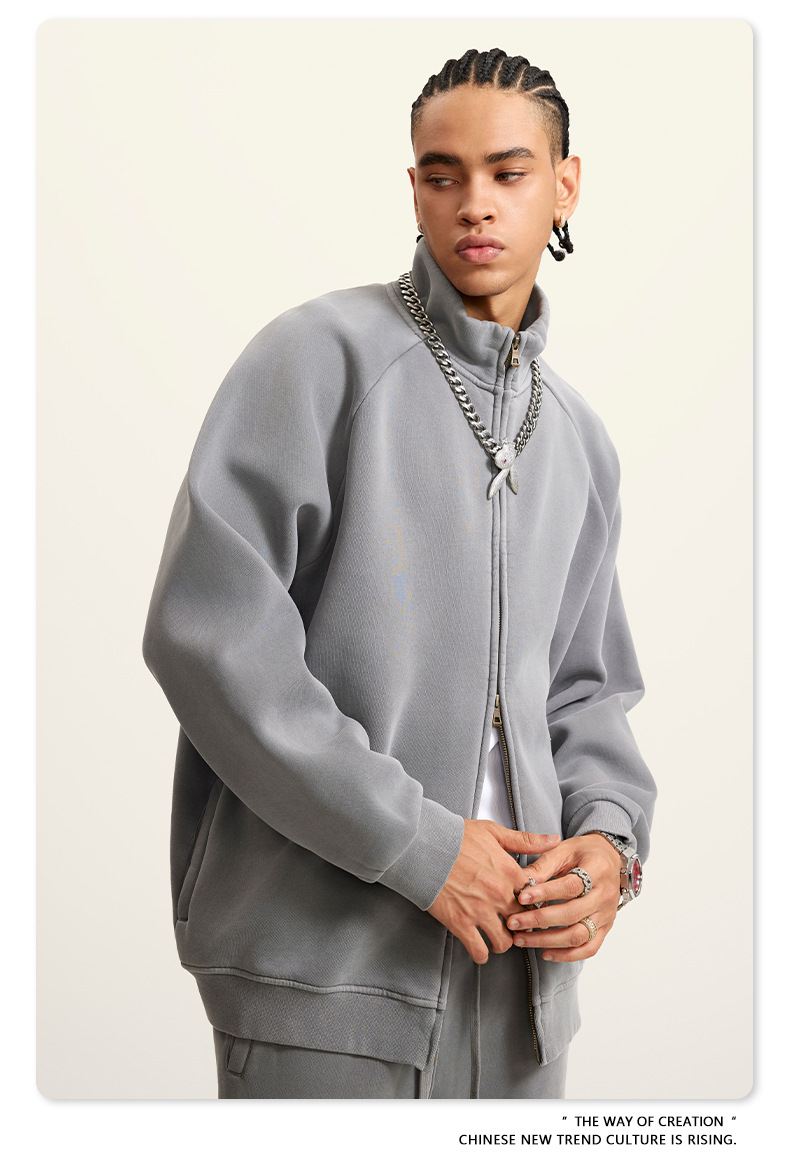 BE 남성 2025 가을, 겨울 트렌디 브랜드 헤비급 레트로 워시 라글란 지퍼 자켓 남성용 루즈 벨벳 대형 자켓