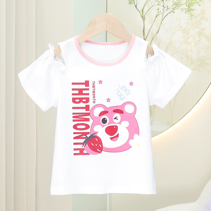 여름 신상 여아 면 반팔 티셔츠 패셔너블한 탑 어린이 올매치 스타일리시 한 겉옷 반팔 얇은 쿨로미