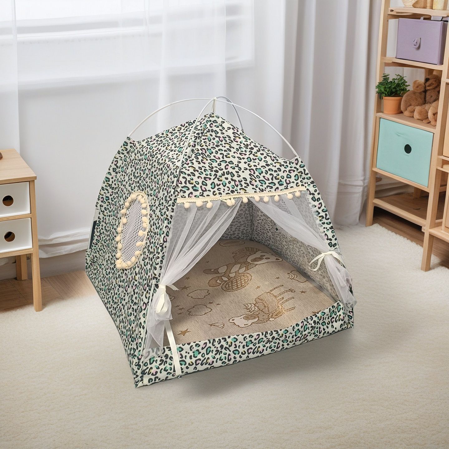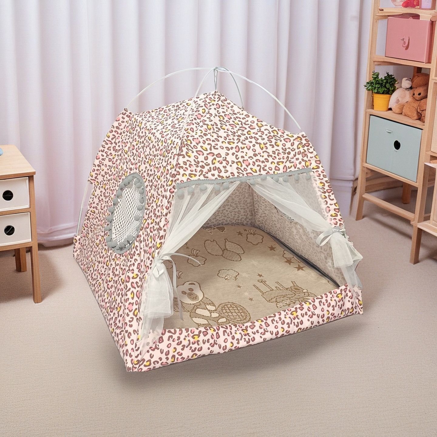 사계절용 고양이 집, 소형견 집, 소형 텐트, 분리 세탁 가능, 접이식 반폐쇄형 고양이 텐트 용품 도매스토어 가기