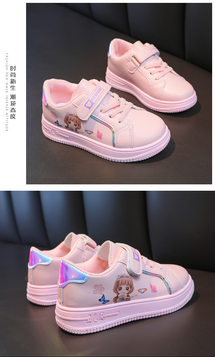 여아 흰색 신발 캐주얼 공주 스타일 봄과 가을 신상품 3-11 세 소녀와 학생을위한 한국식 플랫 스포츠 스니커즈