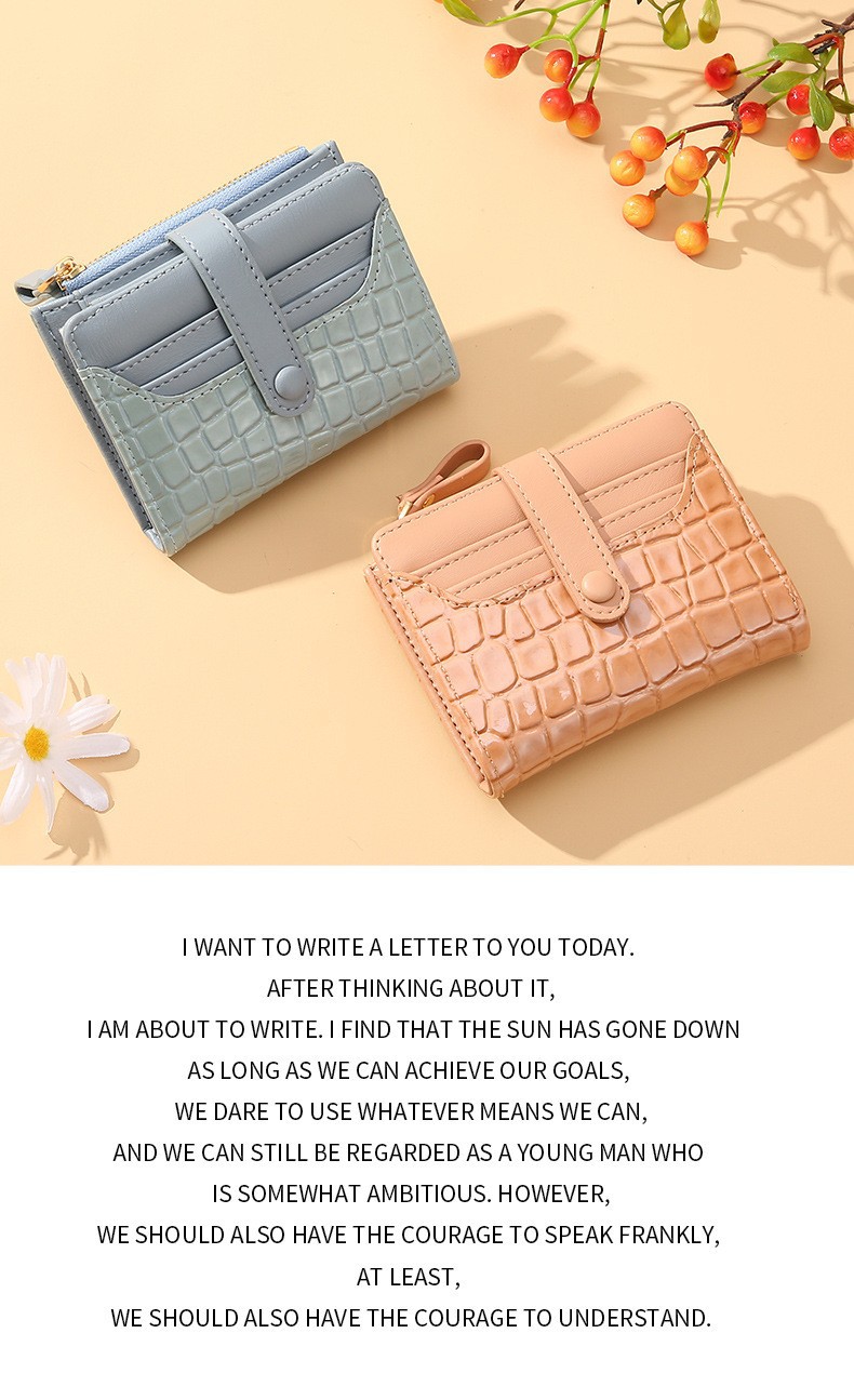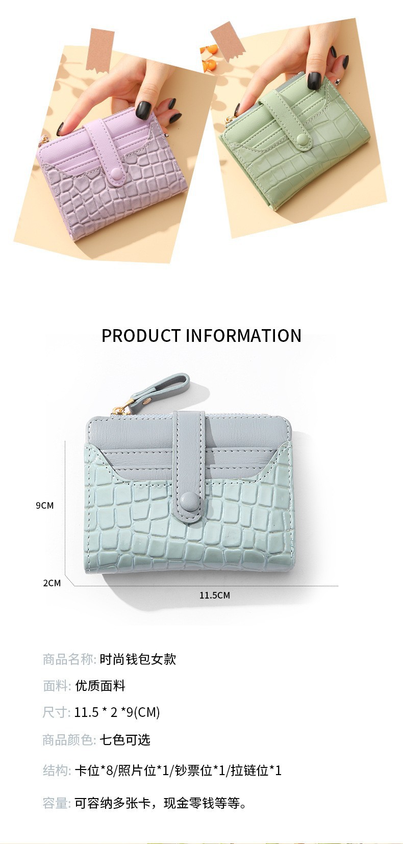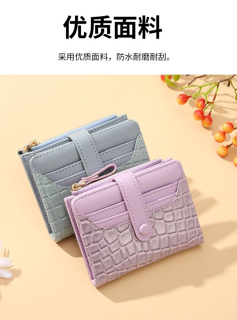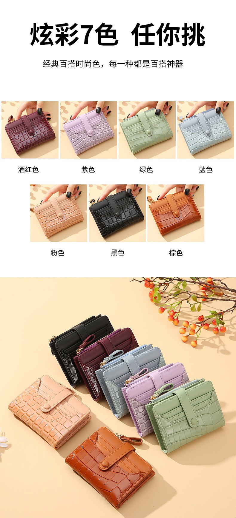 2023新款女士韩版复古鳄鱼纹钱包短款简约气质多卡位卡包零钱夹包