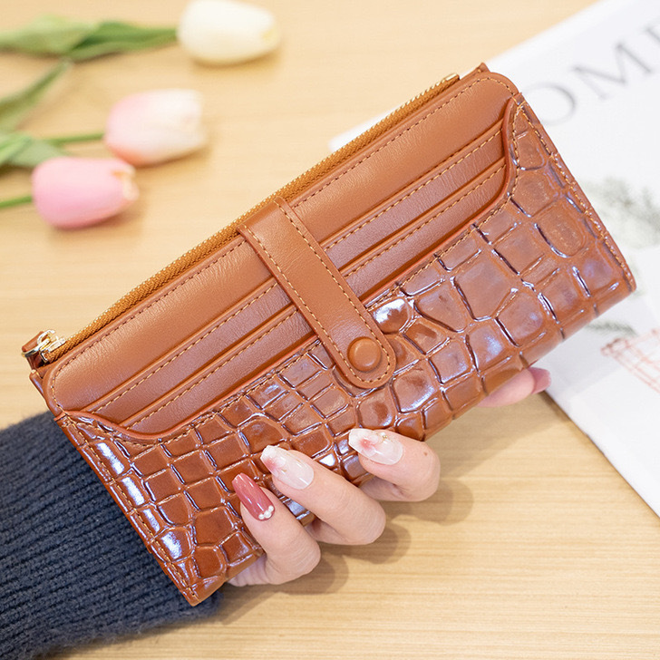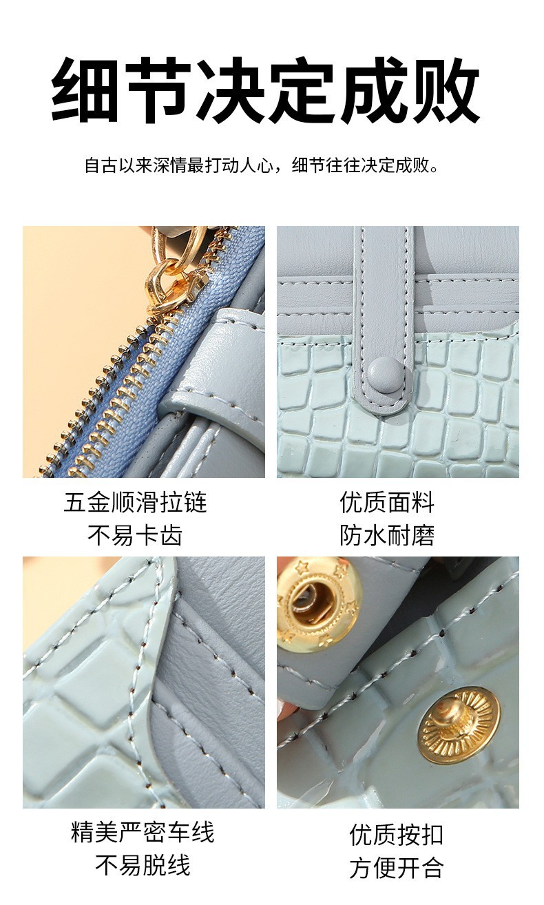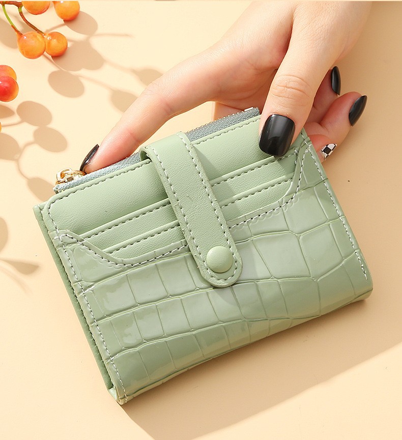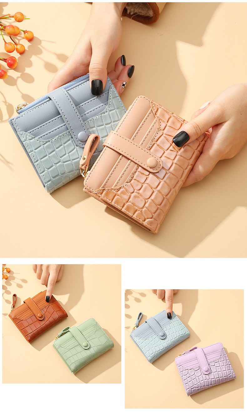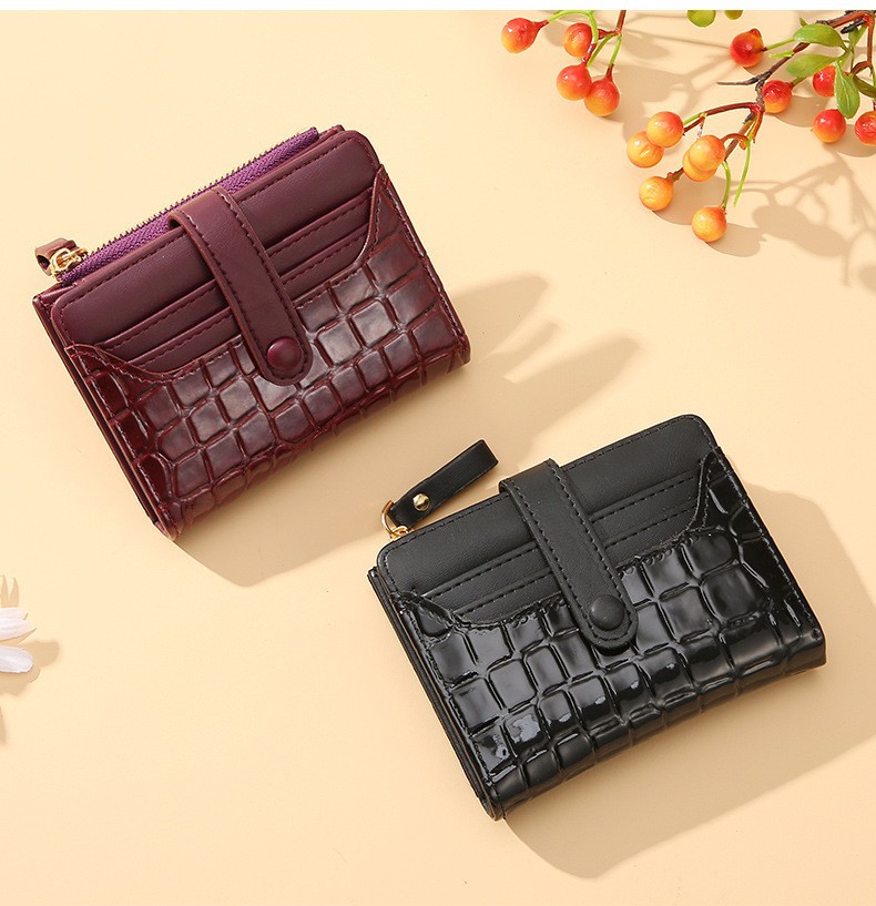 2023新款女士韩版复古鳄鱼纹钱包短款简约气质多卡位卡包零钱夹包
