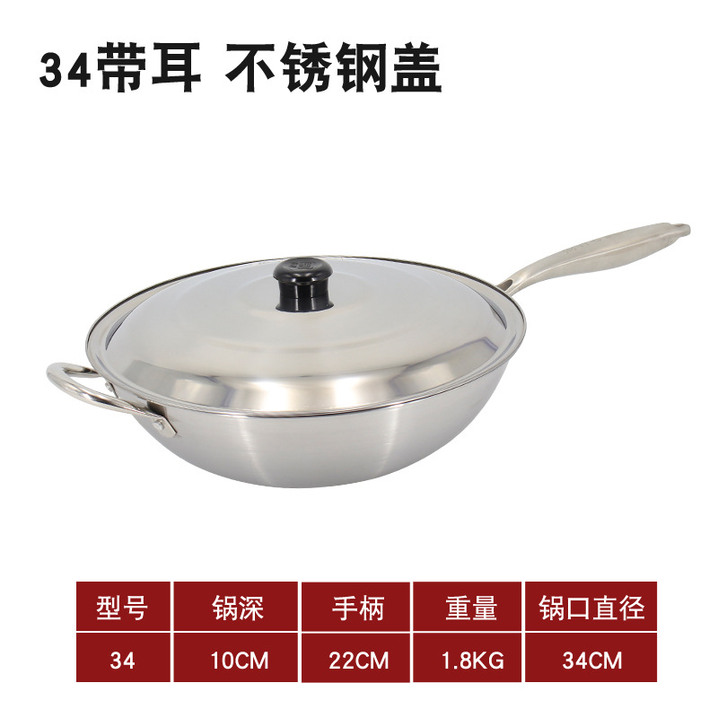 • 귀가 달린 둥근 바닥 34 스틸 핸들 + 스테인레스 스틸 커버