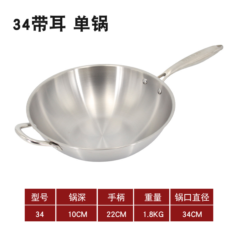 순수 스테인레스 스틸 프라이팬 프라이팬 독일 비 램프 블랙 논스틱 팬 304 가정용 비 코팅 인덕션 쿠커 가스
