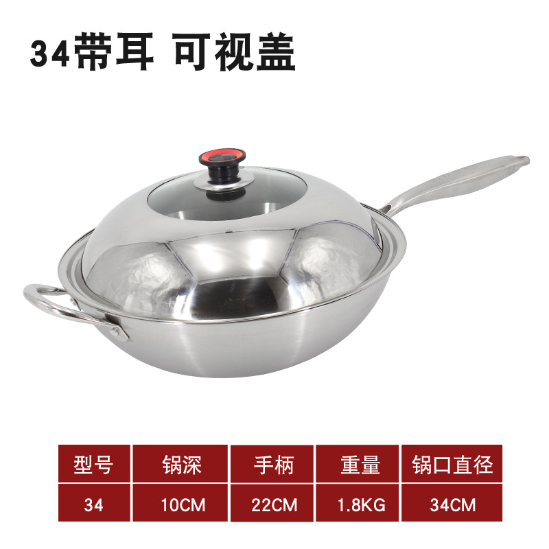 • 귀가 있는 평평한 바닥 34 스틸 핸들 + 스테인리스 스틸 커버