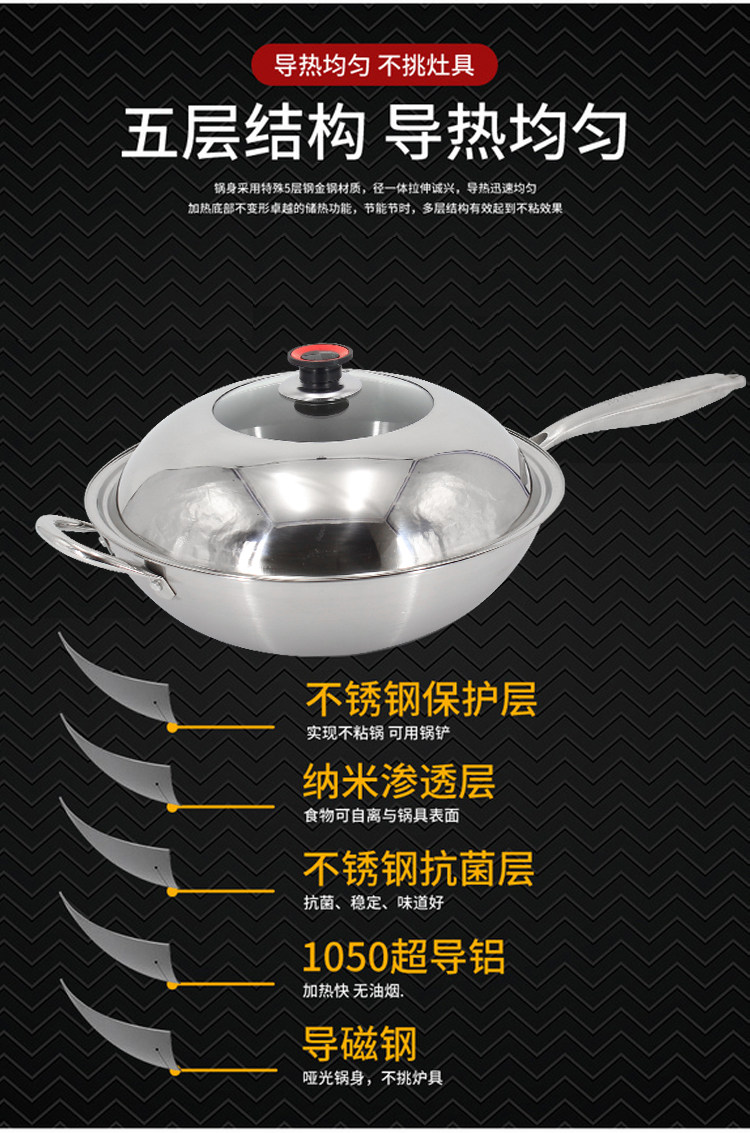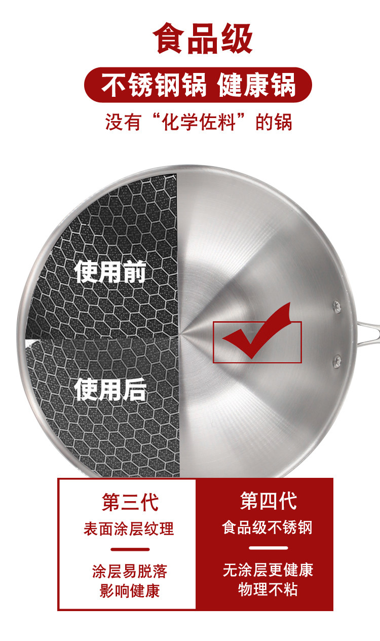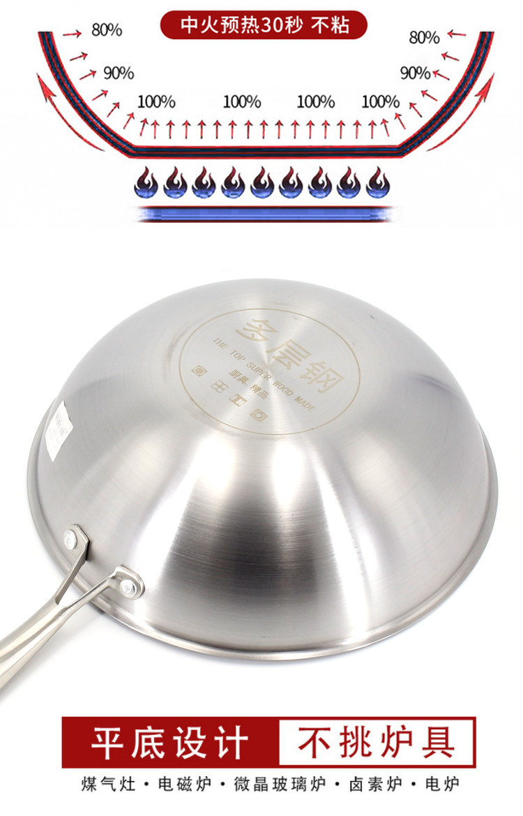 순수 스테인레스 스틸 프라이팬 프라이팬 독일 비 램프 블랙 논스틱 팬 304 가정용 비 코팅 인덕션 쿠커 가스스토어 가기