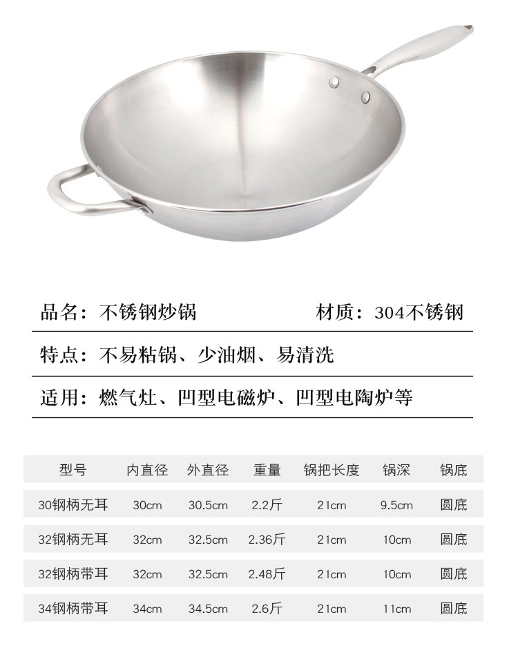 • 귀가 있는 둥근 바닥 34 스틸 핸들 [식품 등급]]
