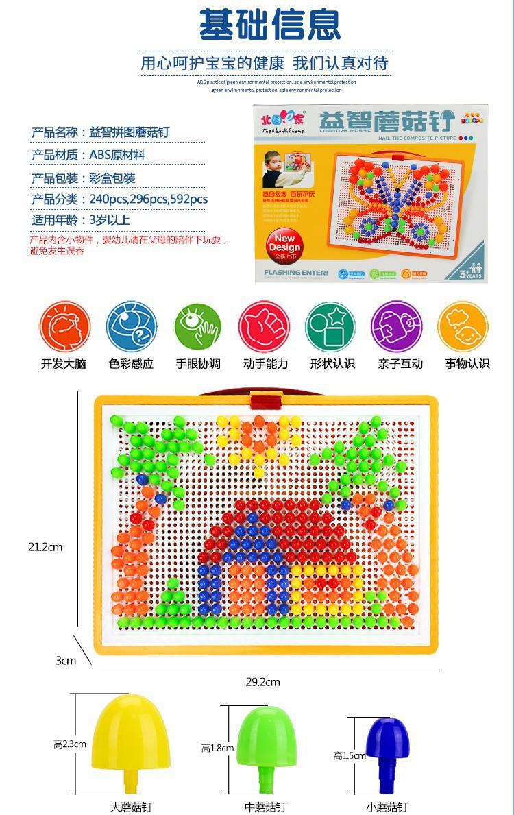 크리 에이 티브 296 버섯 네일 어린이 지능 조합 플러그인 장난감 퍼즐 빌딩 블록 조기 교육 퍼즐 박스스토어 가기