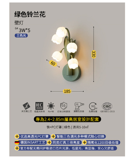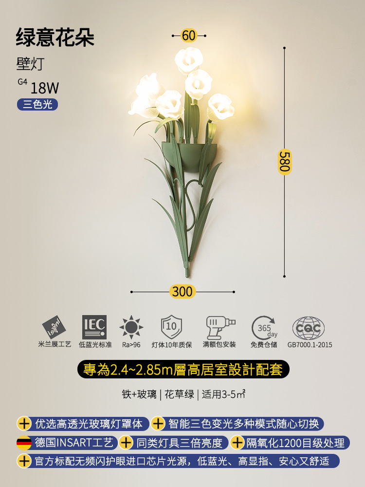 • 녹색 꽃 벽 램프-XD-녹색 꽃-삼색 빛