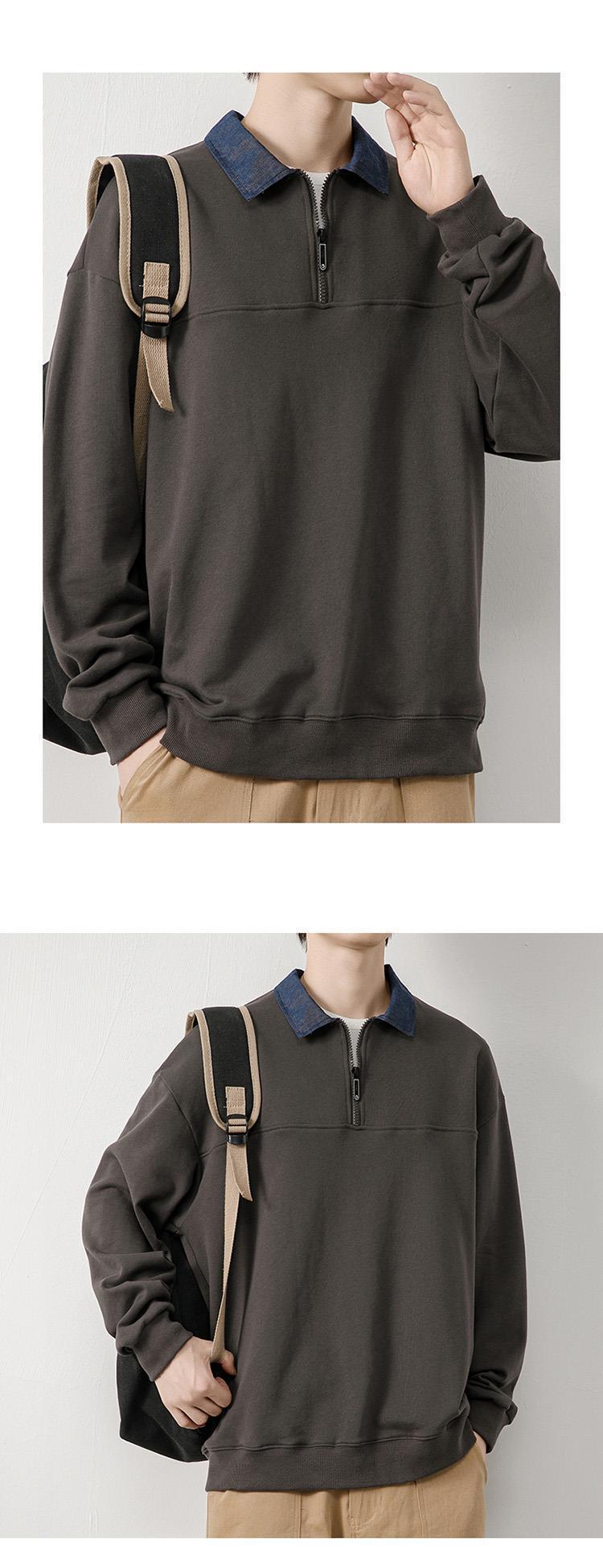 폴로 셔츠 칼라 스웨터 남자의 봄 유행 브랜드 루즈한 베이스 셔츠 2023 새로운 아메리칸 스타일 레트로 컬러 매칭 긴 소매 티셔츠스토어 가기