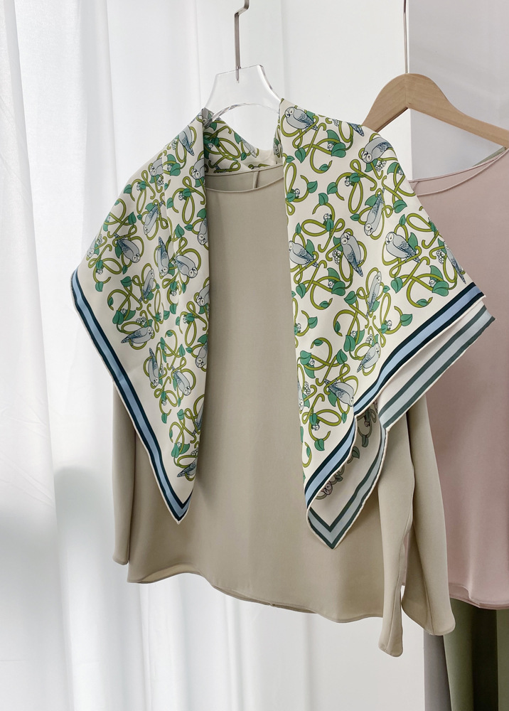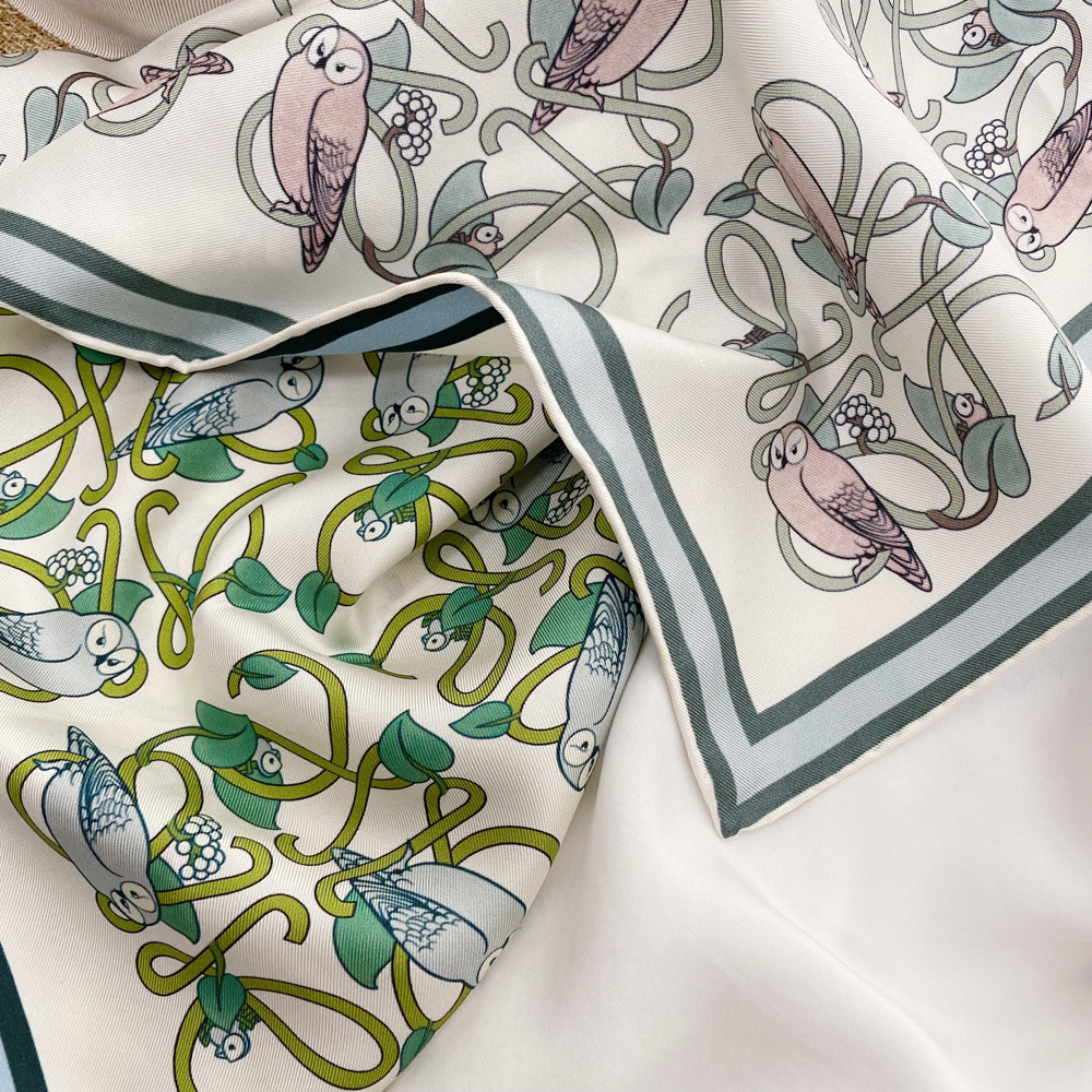 두꺼운 18 mm 양면 인쇄 실크 트윌 90 라지 스퀘어 스카프 여성용 모든 매치 봄과 가을 뽕나무 실크 숄스토어 가기
