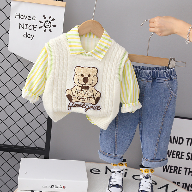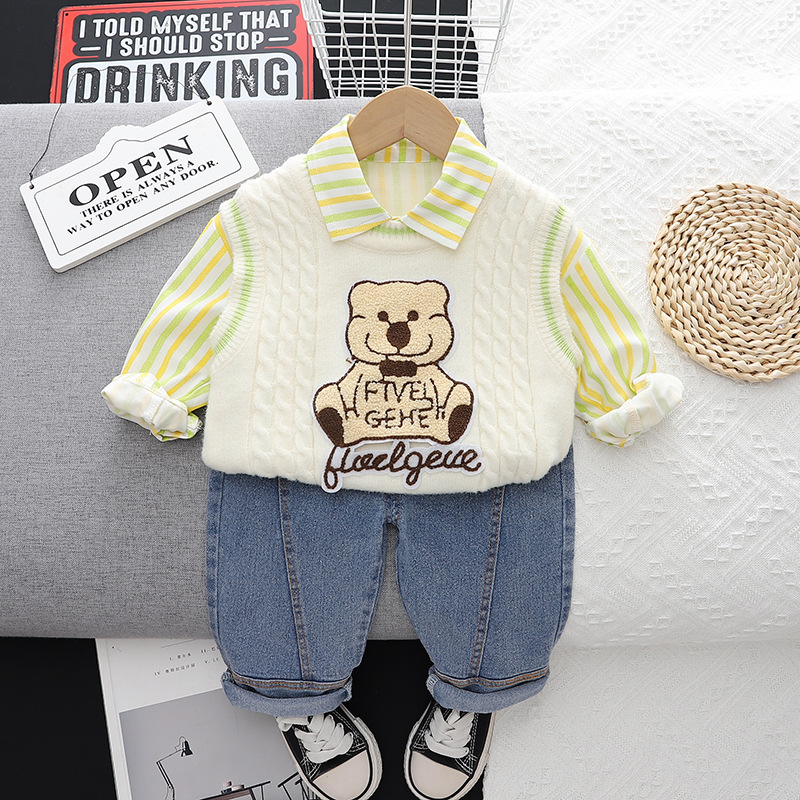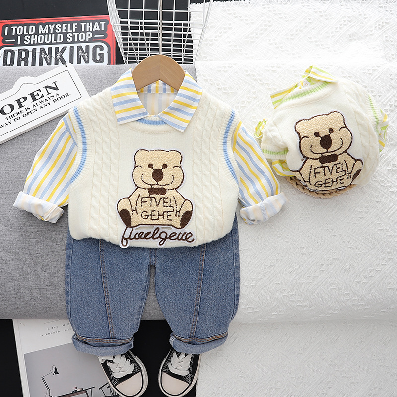 소년 곰 스웨터 조끼 쓰리 피스 세트 2023 가을 새 한국 옷 소년 아기 스타일리스트 봄 옷스토어 가기