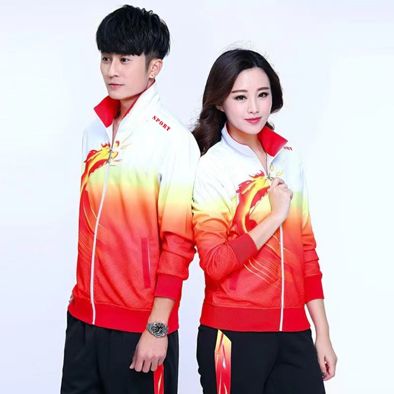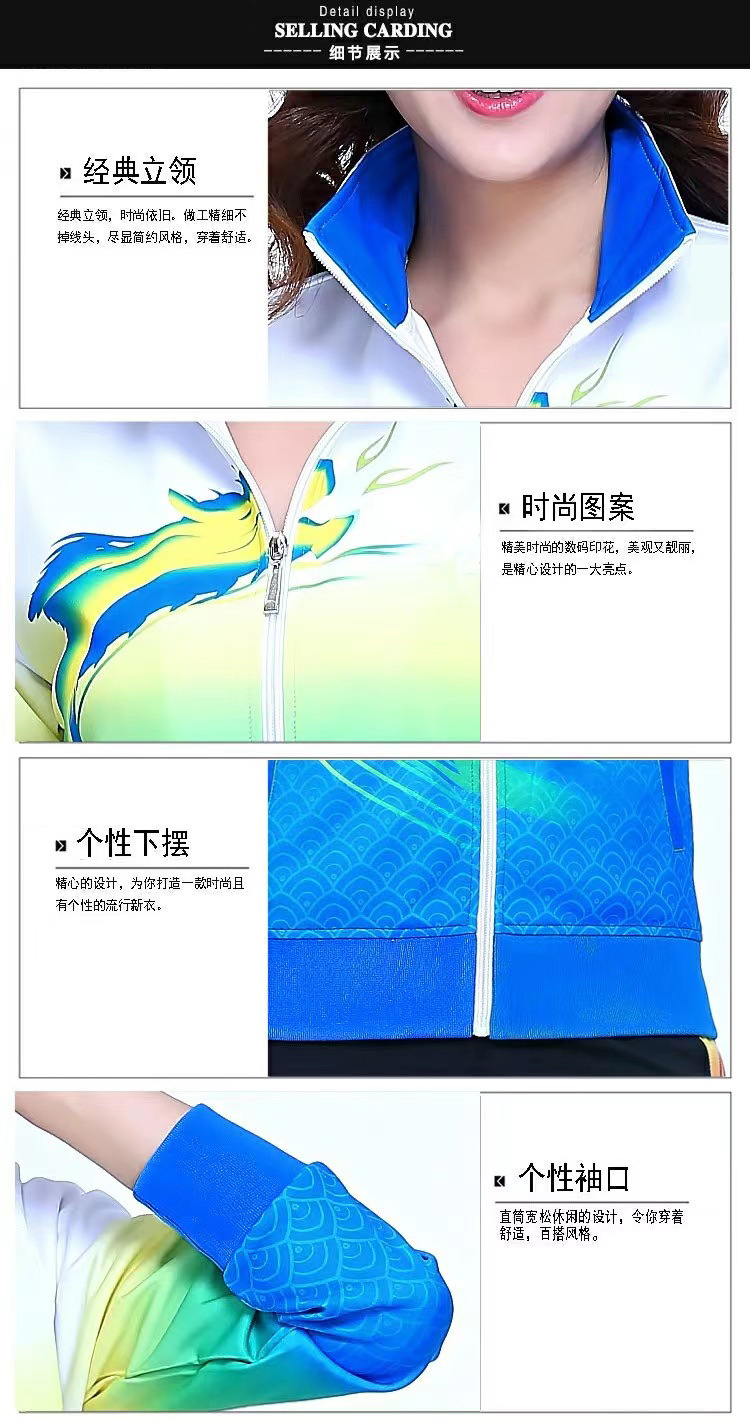 드림팀 에어로빅 긴팔 스포츠웨어 남성과 여성의 봄과 가을 세트 중년 및 노인 플러스 사이즈 스퀘어 댄스 건강한 스텝 그룹 세트스토어 가기