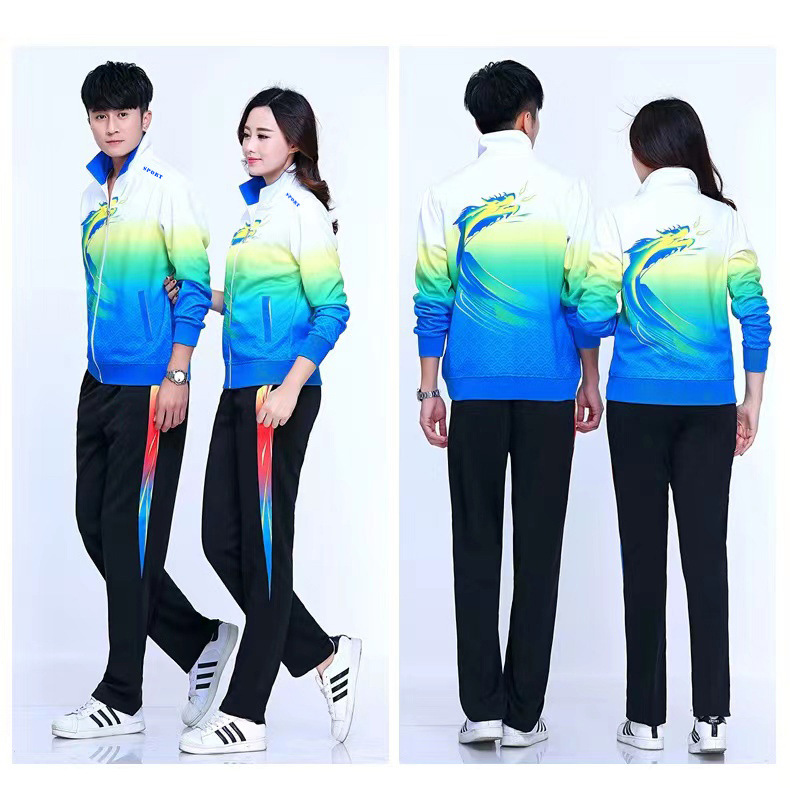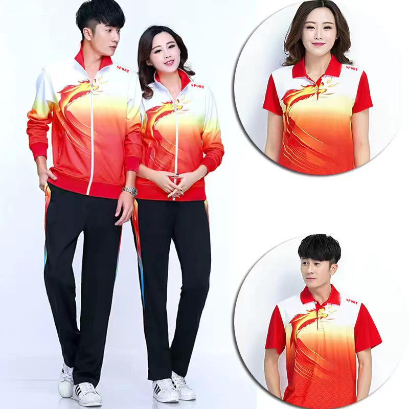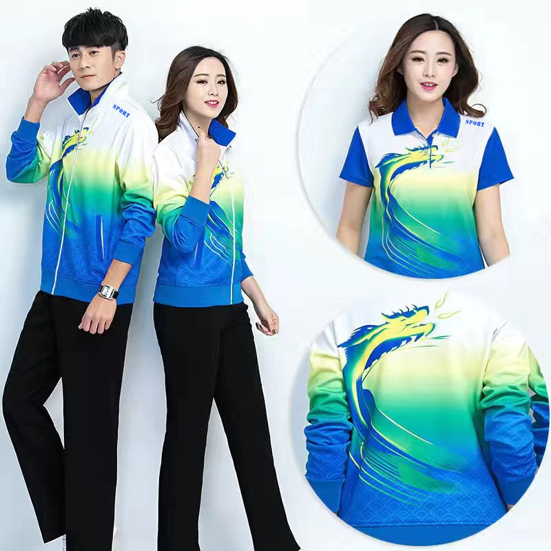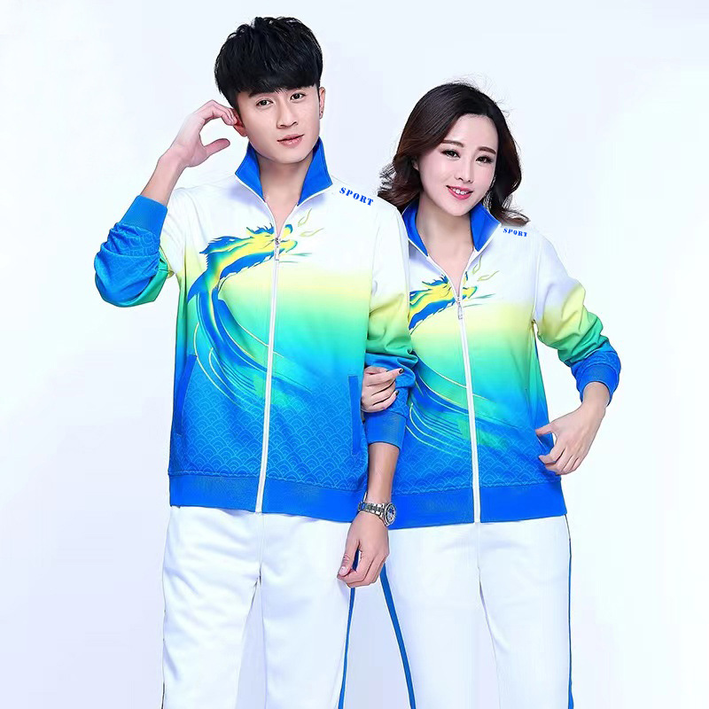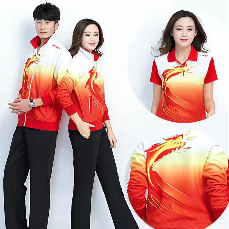 드림팀 에어로빅 긴팔 스포츠웨어 남성과 여성의 봄과 가을 세트 중년 및 노인 플러스 사이즈 스퀘어 댄스 건강한 스텝 그룹 세트