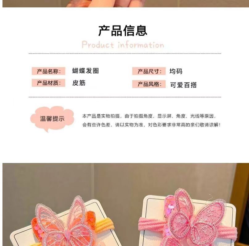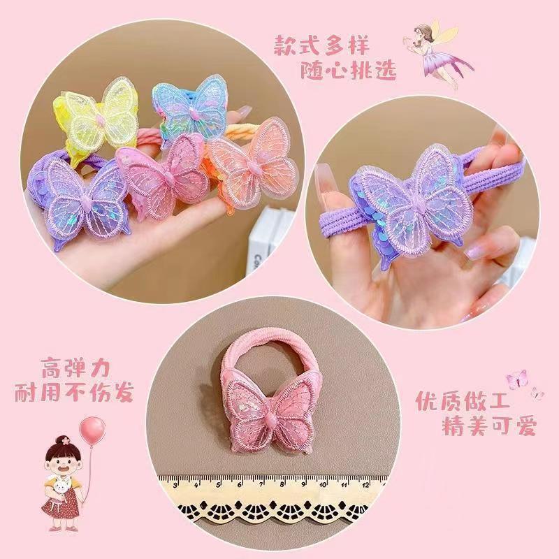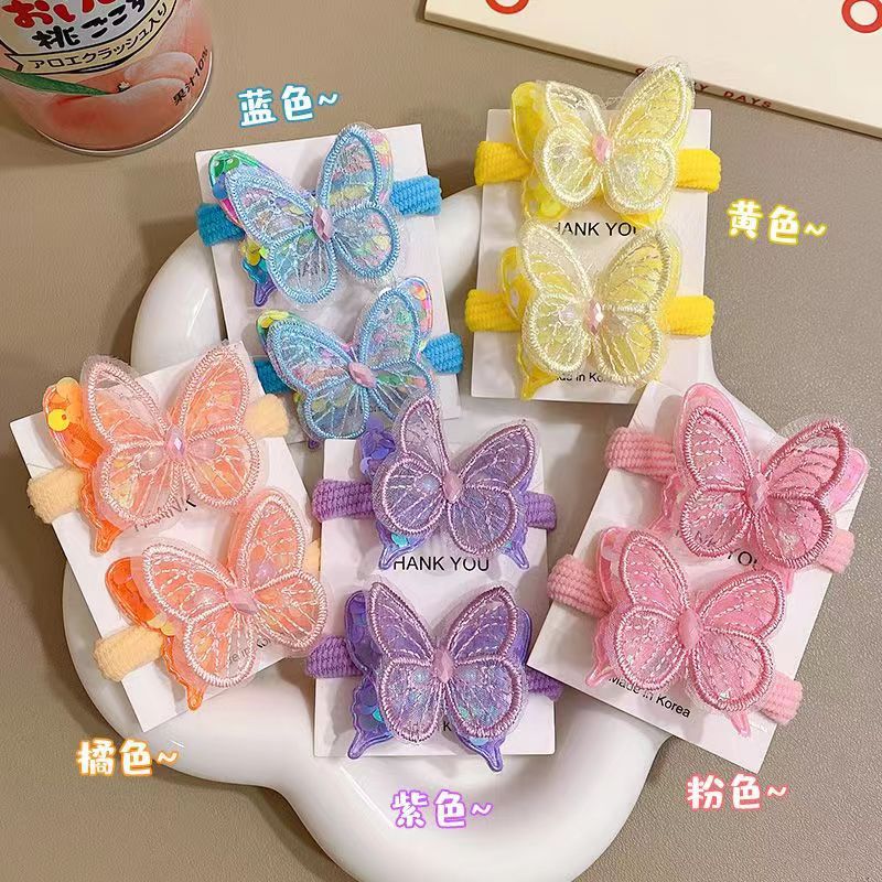 儿童发绳可爱甜美亮片蝴蝶头绳高弹力不伤发毛巾圈糖果色发圈发饰스토어 가기