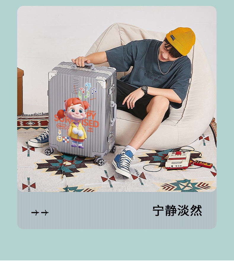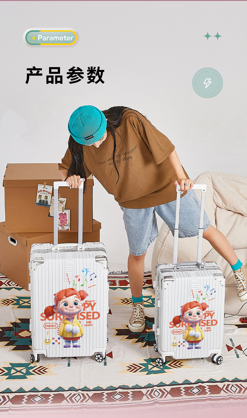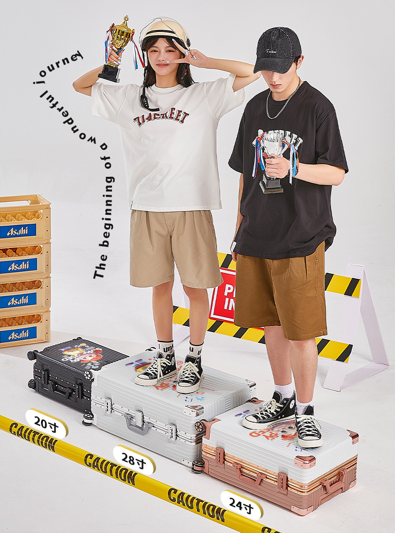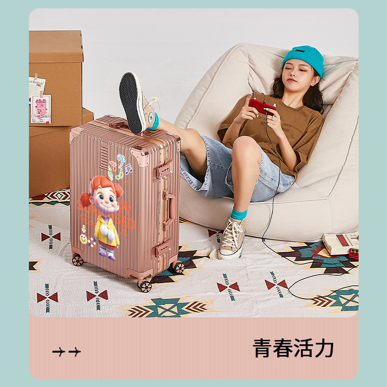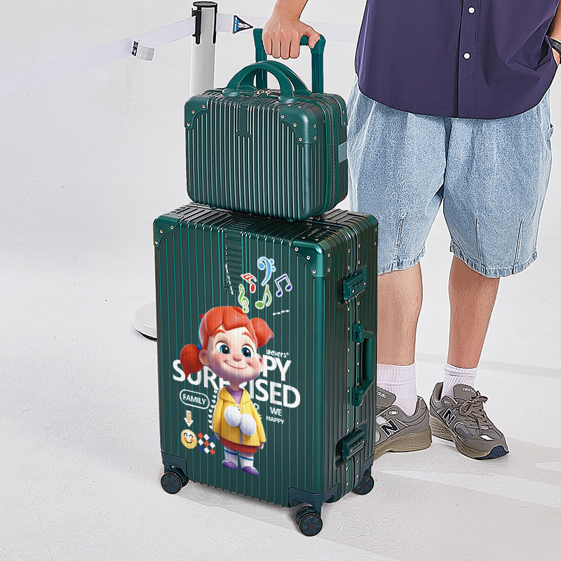 알루미늄 프레임 수하물 남여 공용 20/28 인치 대용량 만화 지퍼 강력하고 튼튼한 가죽 케이스스토어 가기