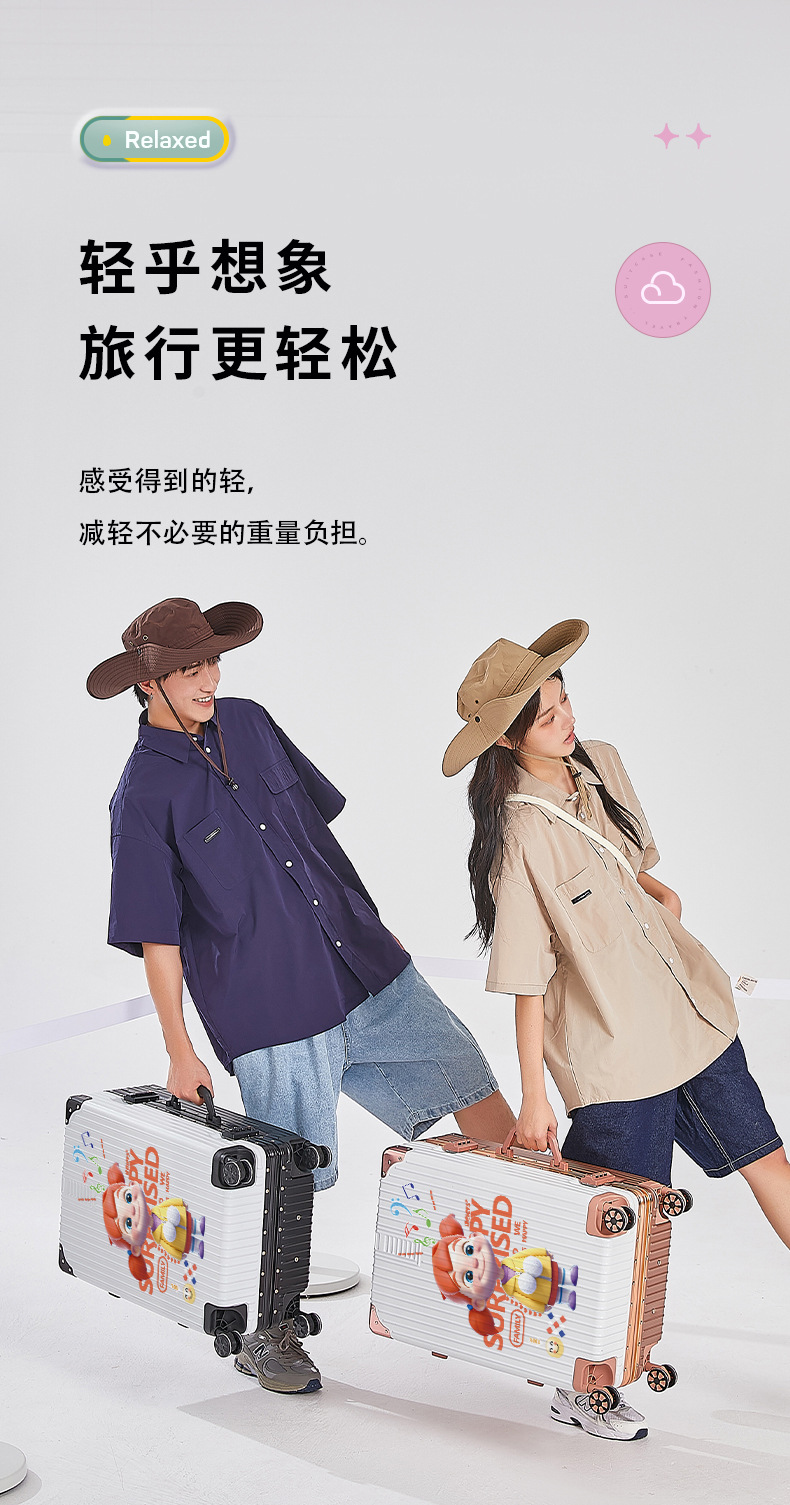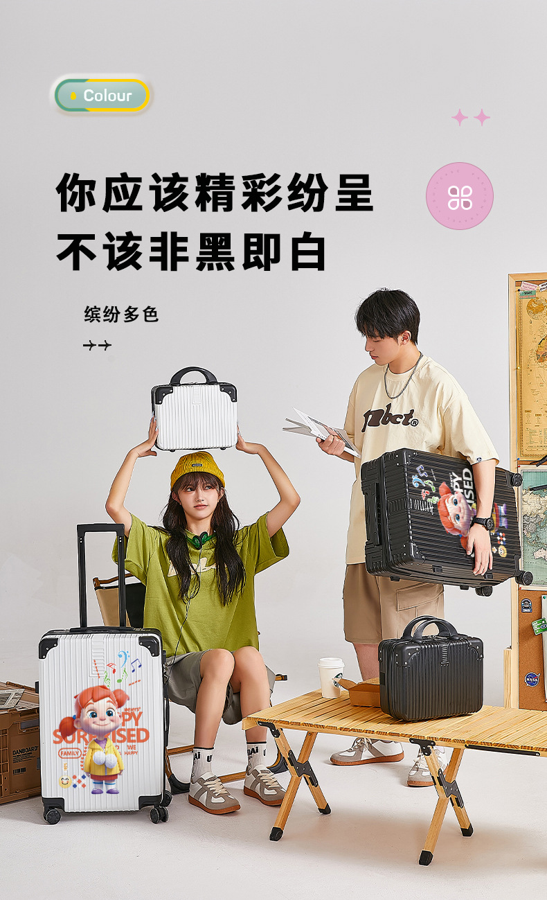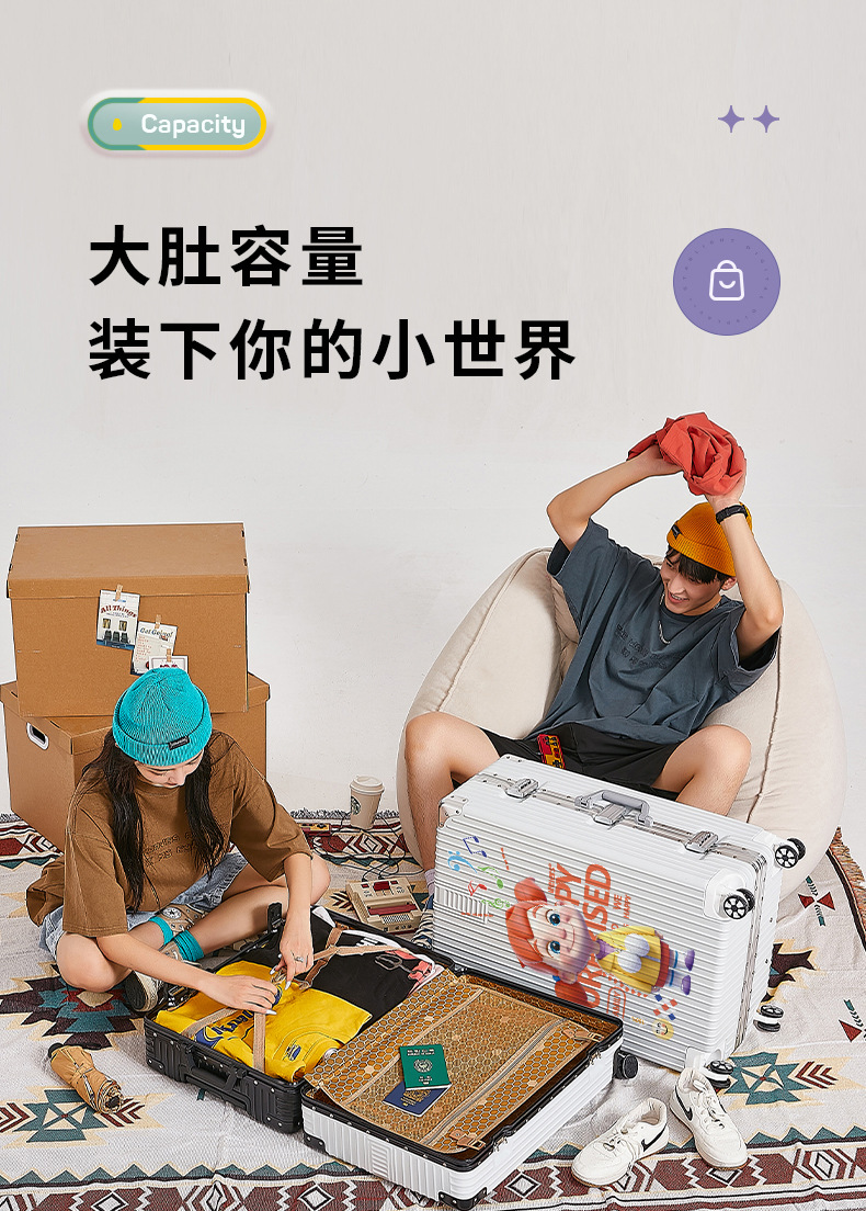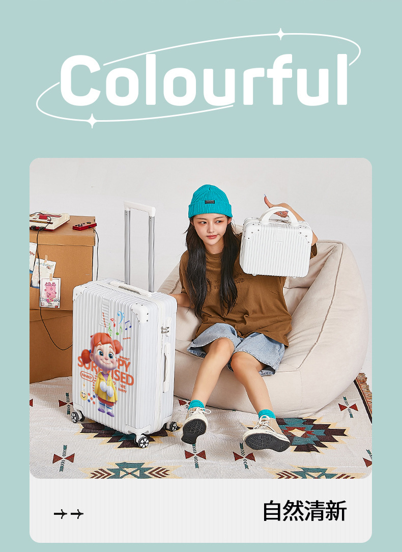 알루미늄 프레임 수하물 남여 공용 20/28 인치 대용량 만화 지퍼 강력하고 튼튼한 가죽 케이스스토어 가기