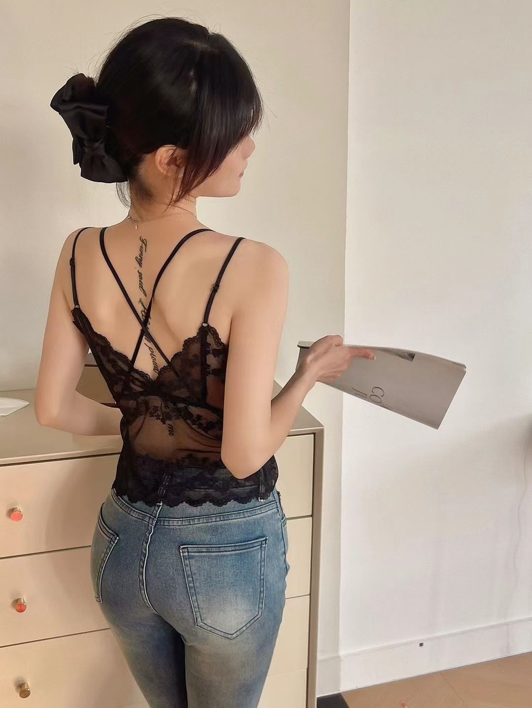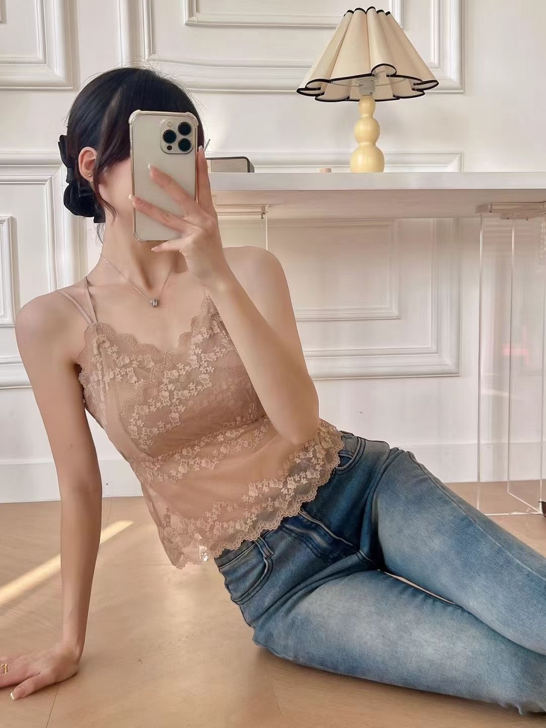 여름 레이스 아름다운 백 크로스 캐미솔 조끼 여성용 내부 착용 겉옷 착용 원피스 가슴 패드 섹시베이스 캐미솔 조끼스토어 가기