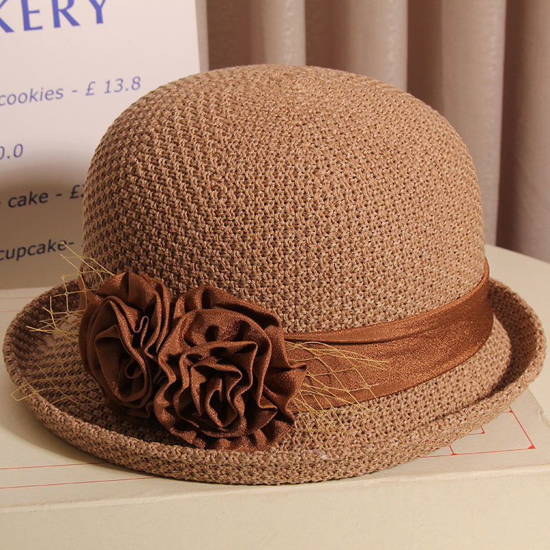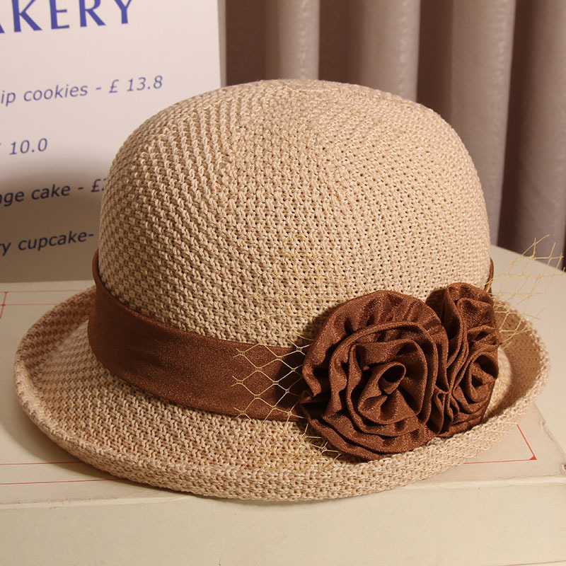 한국 스타일 태양 모자 여자의 여름 유행 우아한 자외선 차단제 태양 모자 말린 복고풍 영국 탑 모자 여행 분지 모자