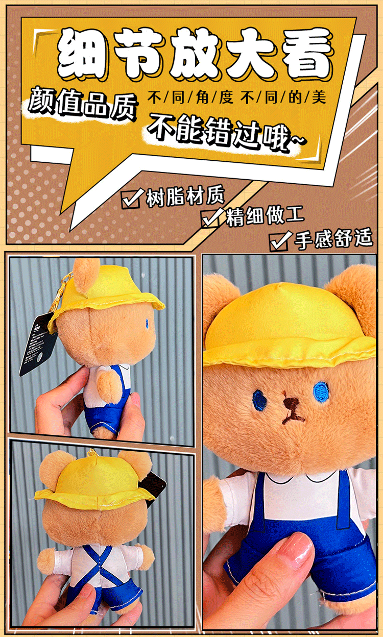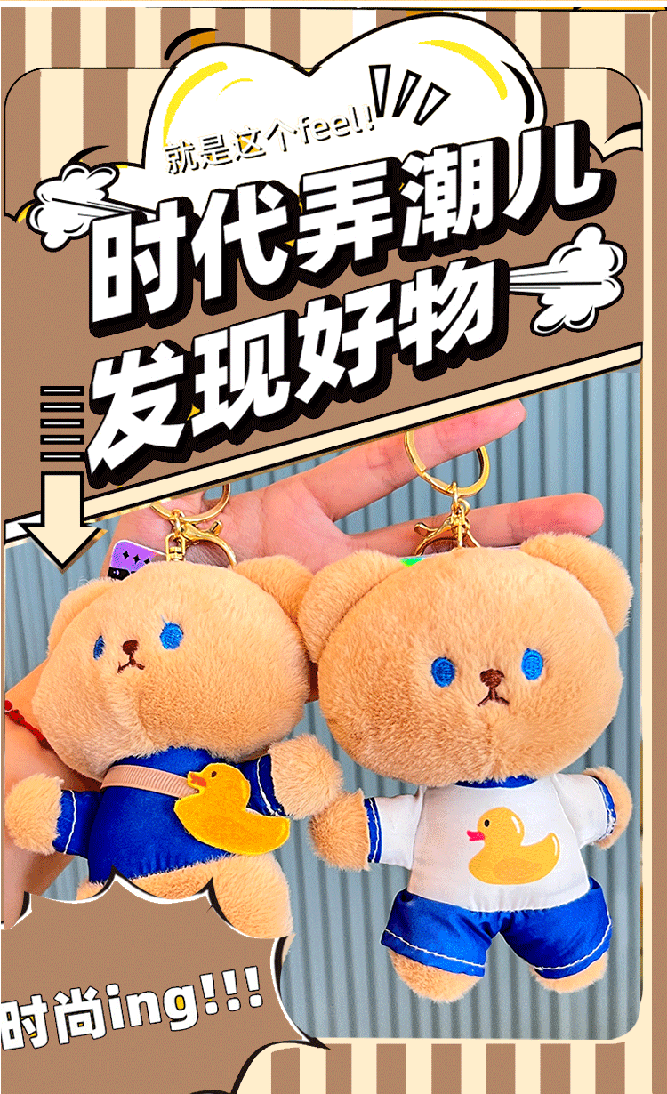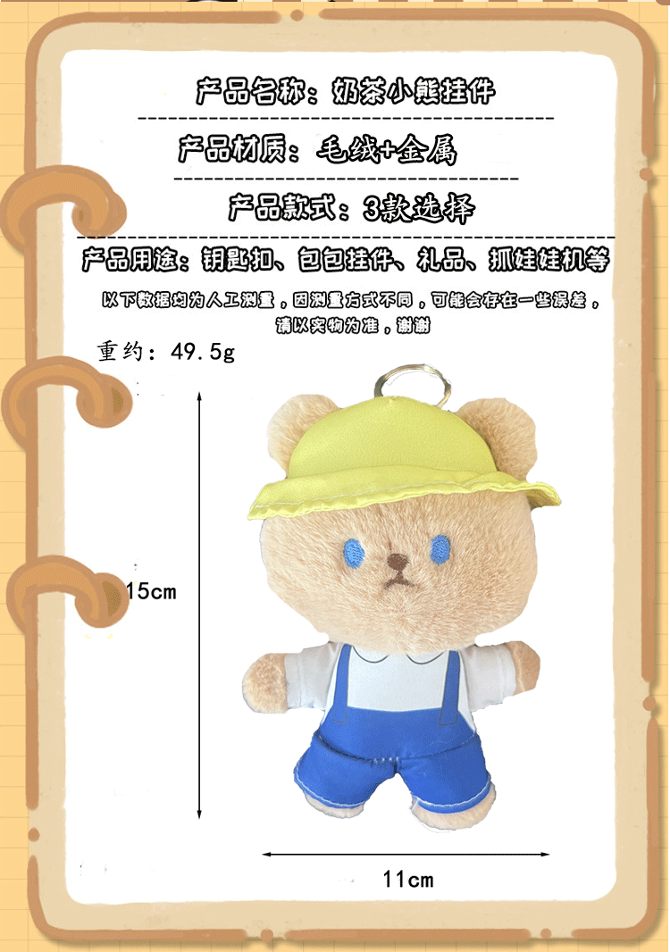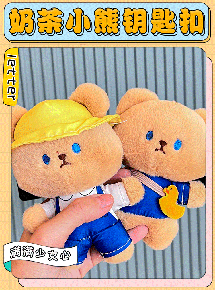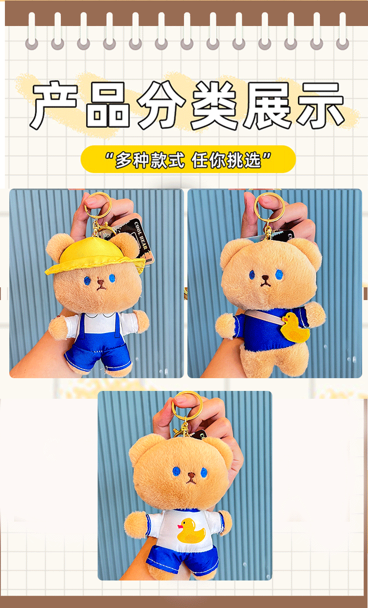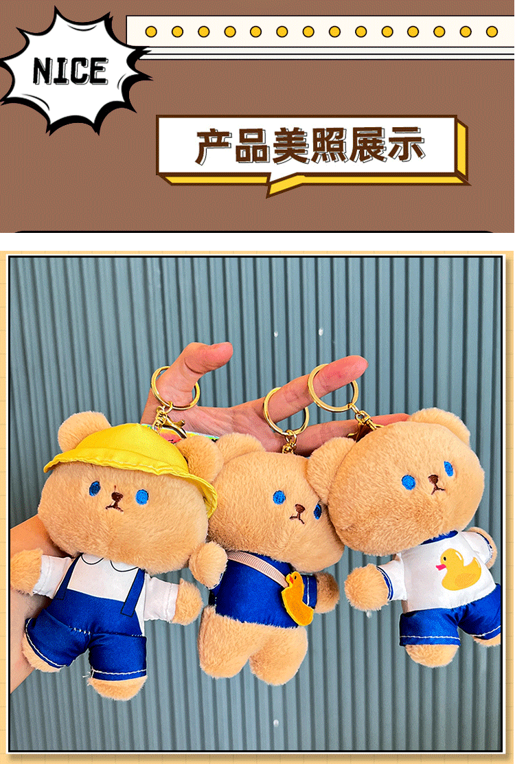 리틀 베어 플러시 키 체인 펜던트 귀여운 만화 인형 기계 인형 인터넷 인기있는 어린이 인형 학교 가방 매달려 장식품 도매