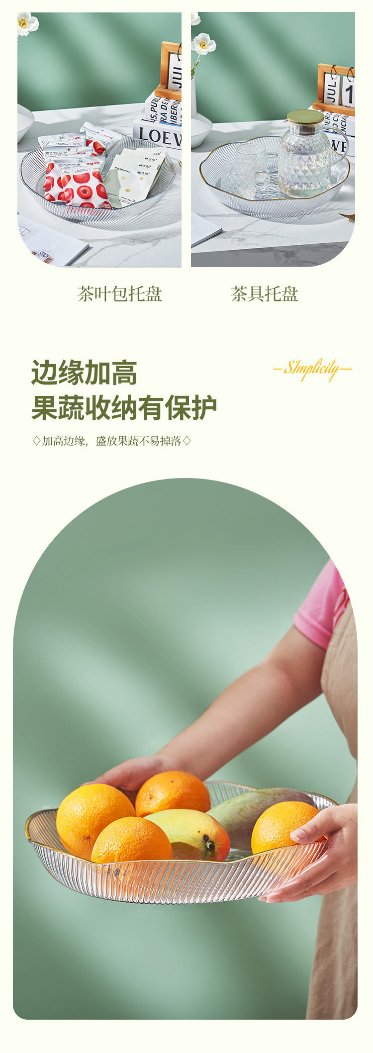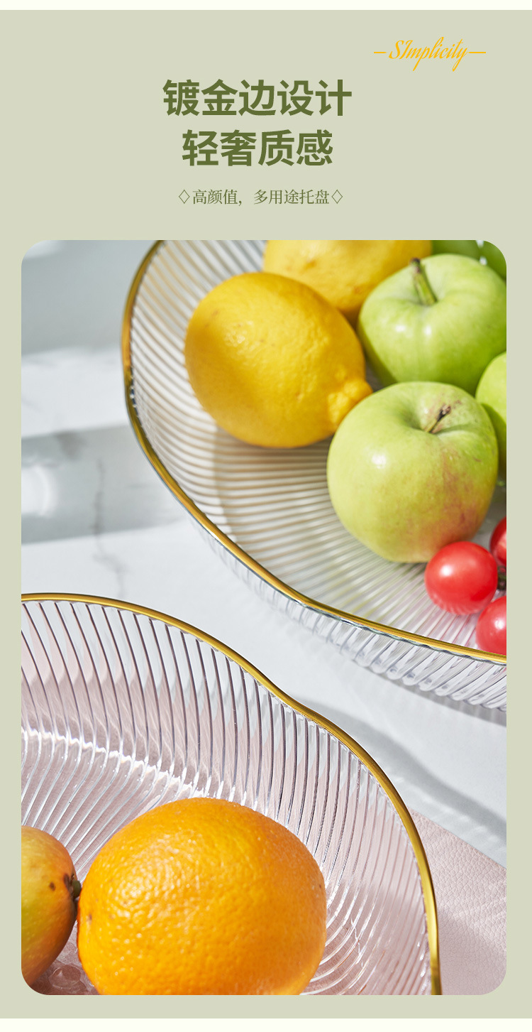 라이트 럭셔리 스타일 PET 과일 플레이트 고급 브론징 에지 멜론 씨앗 스낵 과일 및 야채 플레이트 데스크탑 과일 저장 플레이트 보관 플레이트