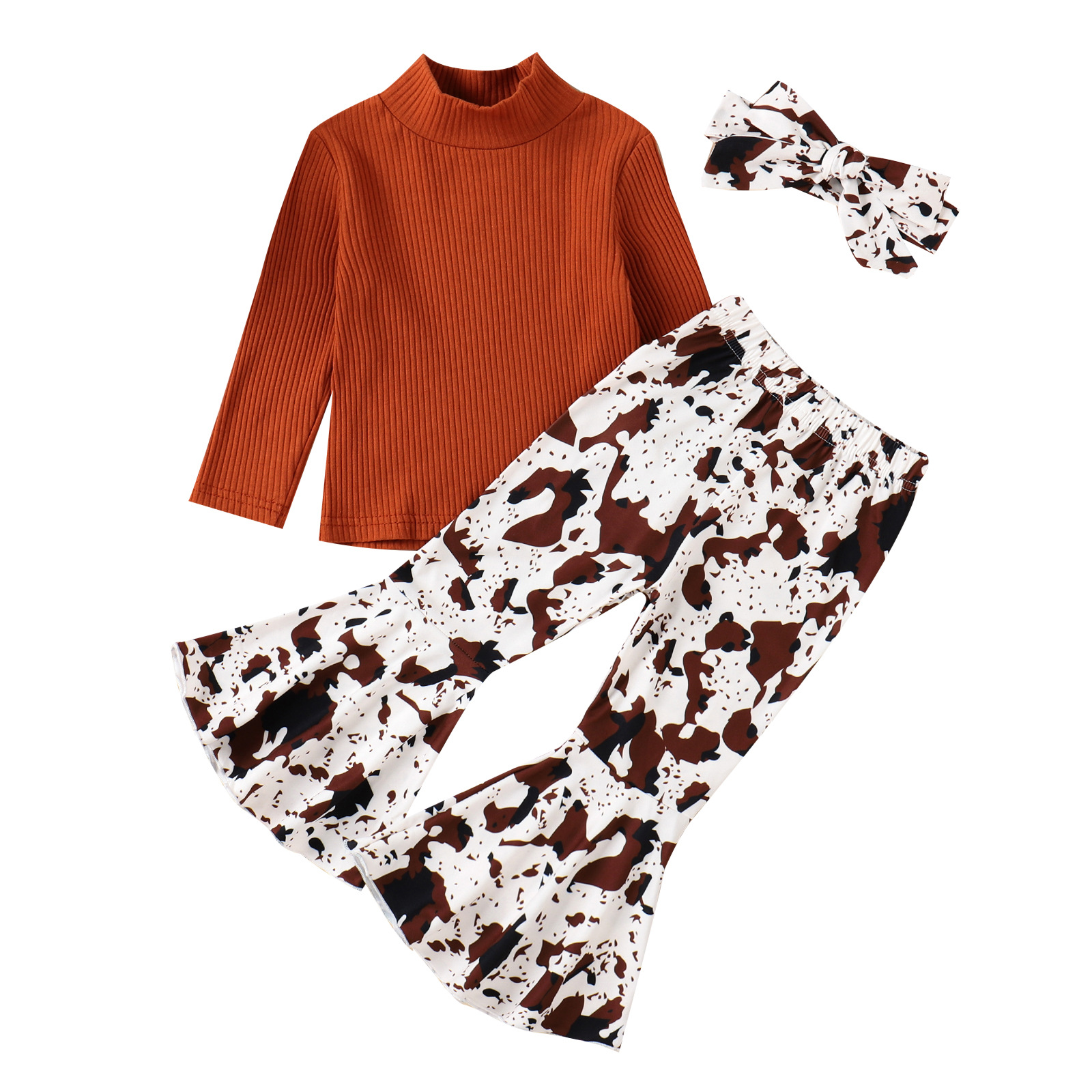 Baoxin 아동복 가을과 겨울 하이 칼라 긴 소매 탑 스트라이프 레오파드 무늬 플레어 팬츠 여아 세트