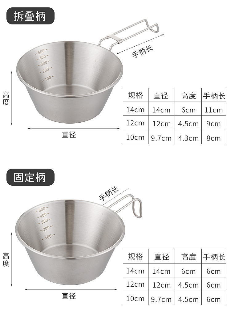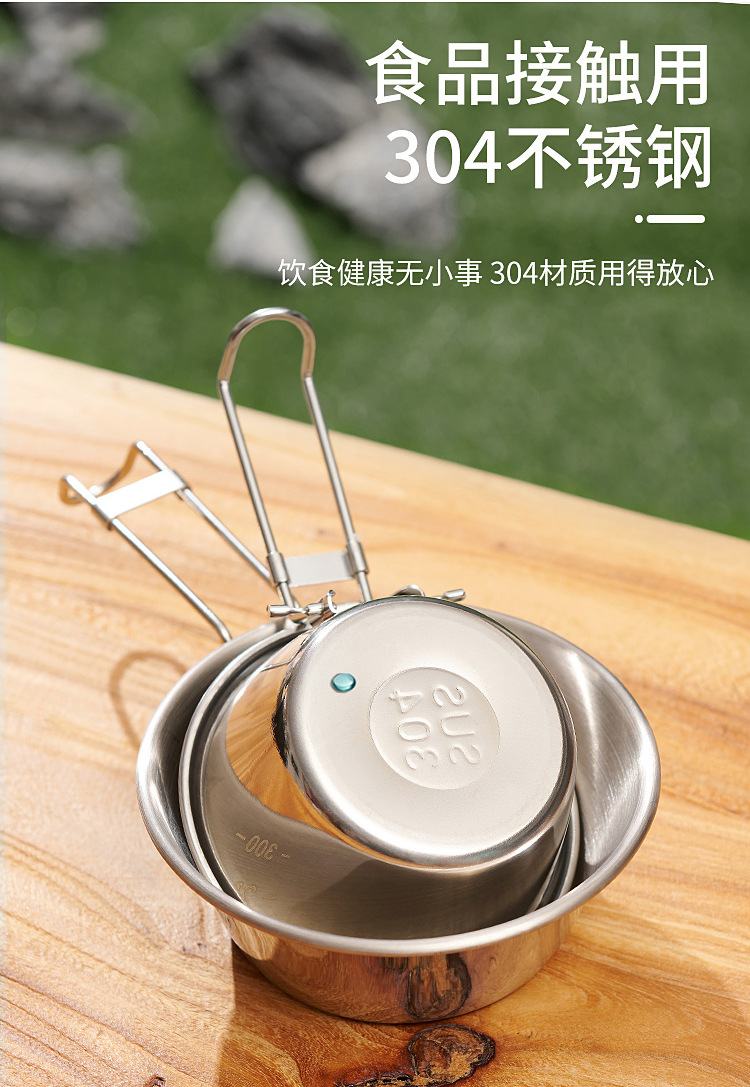 야외 304 식품 등급 스테인레스 스틸 스노우 풀 그릇 휴대용 캠핑 식기 피크닉 캠핑 접는 그릇 다기능 그릇스토어 가기