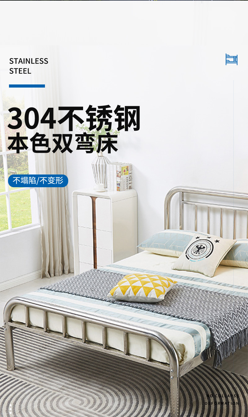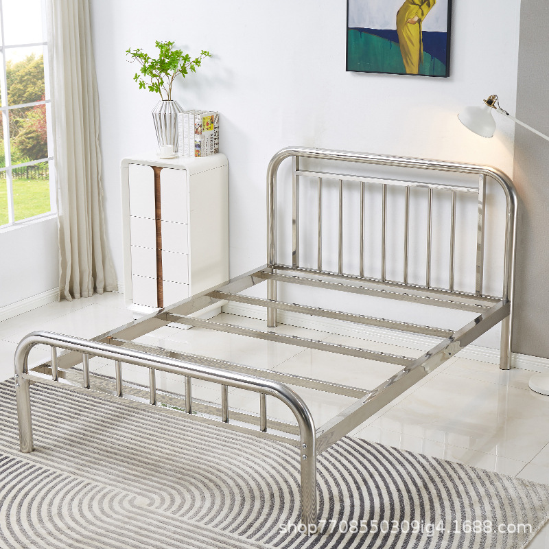 스테인리스 스틸 싱글 침대 1.2m 침대 프레임 임대용 철제 침대 싱글 레이어 침실 학생 기숙사 침대 두꺼운 강철 프레임