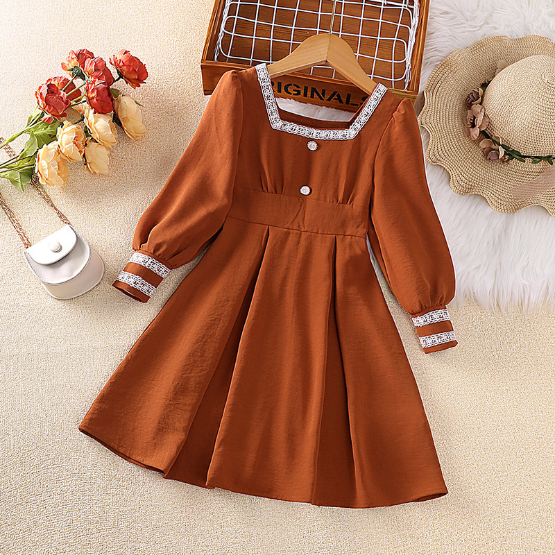 국경 간 아동복 봄 새로운 프랑스 광장 칼라 복고풍 거품 소매 공주 원피스 한국 여자 원피스 도매스토어 가기
