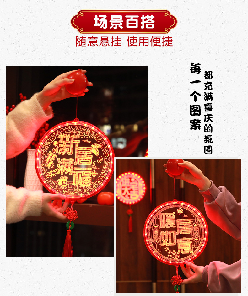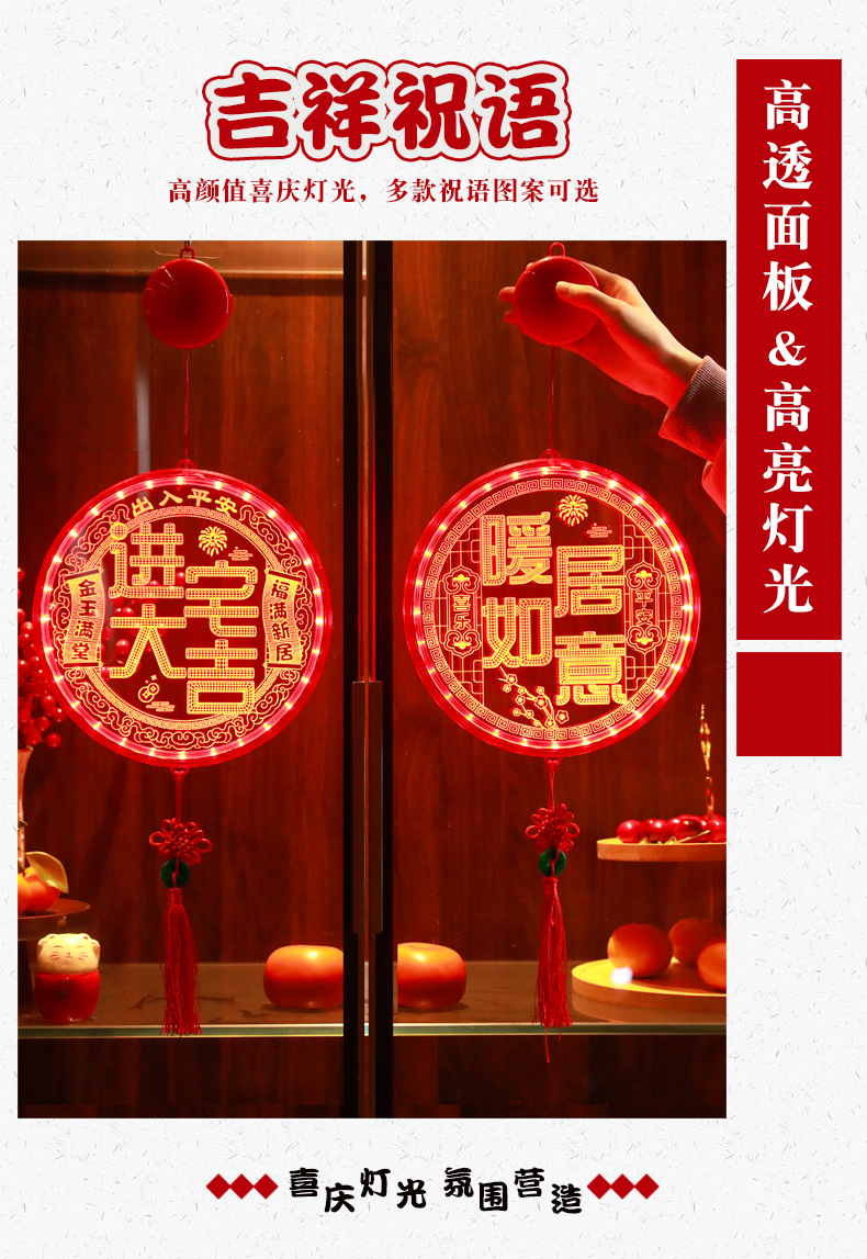 집들이의 기쁨 LED 장식 조명 새 집 입구 빛나는 매달려 장식 집에 안전한 기쁨 Daji 문 스티커 조명스토어 가기