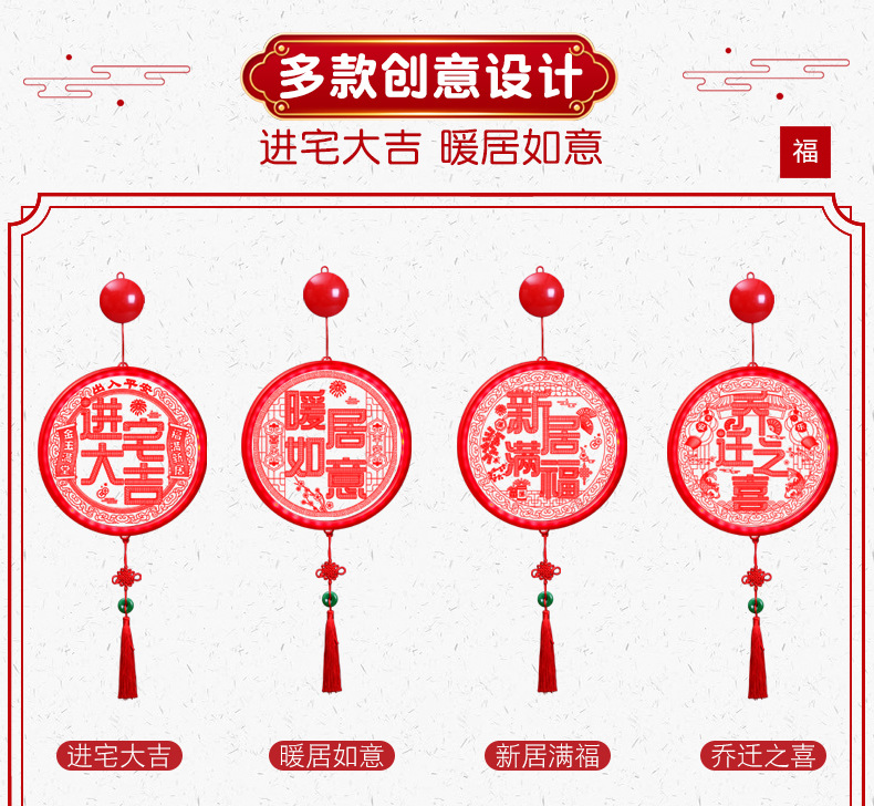 집들이의 기쁨 LED 장식 조명 새 집 입구 빛나는 매달려 장식 집에 안전한 기쁨 Daji 문 스티커 조명