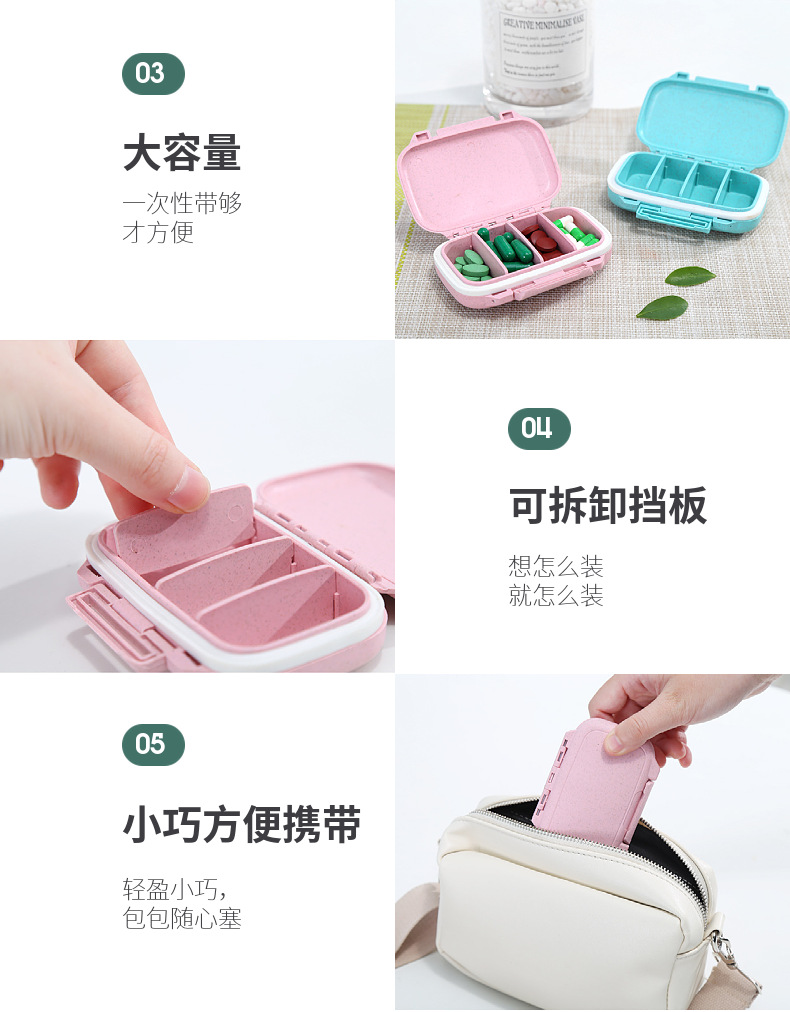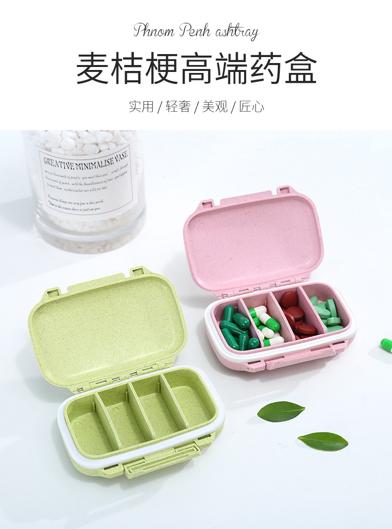 신구획 약 상자 4 작은 약 상자 4 개 약 보관 상자 원형 타원형 사각 약 상자 여행 상자
