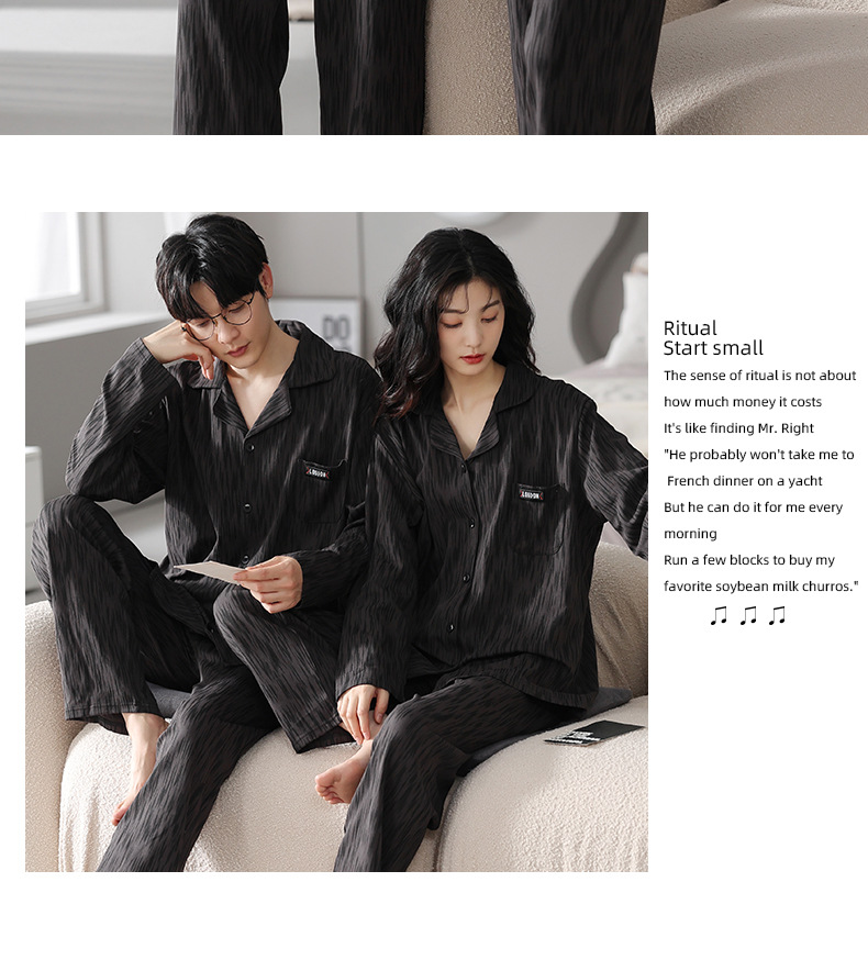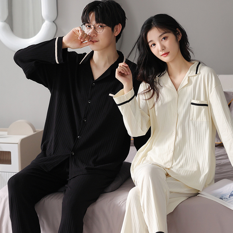 커플 잠옷 여성 봄, 가을 새로운 긴팔 와플 남성 대형 단순 캐주얼 홈웨어 슈트 세대스토어 가기