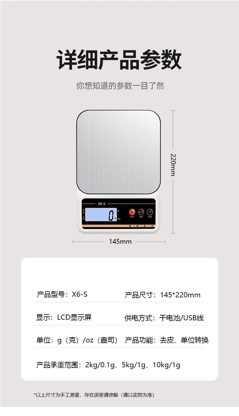 • X6-S 스테인레스 스틸 디스크 충전 백라이트 2kg/0.1g