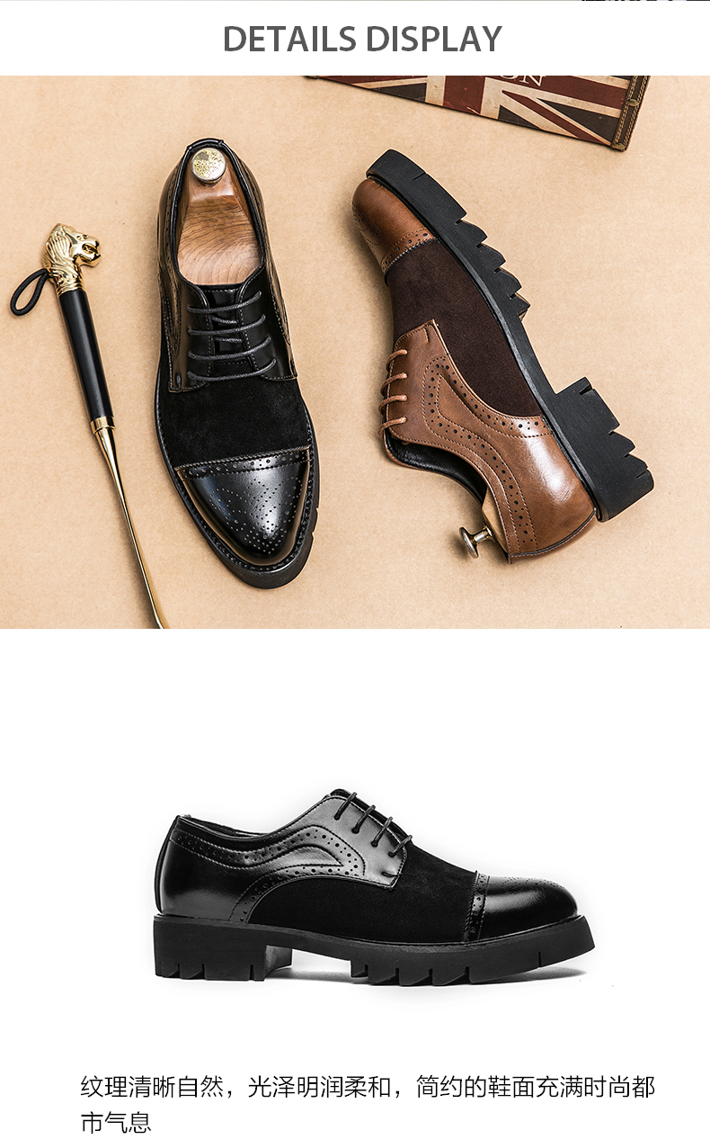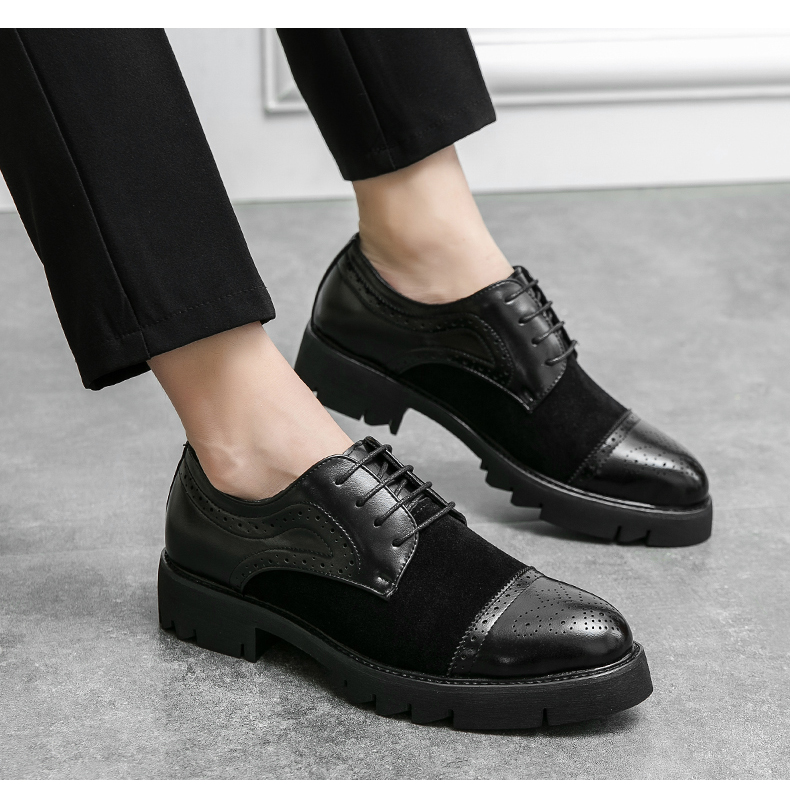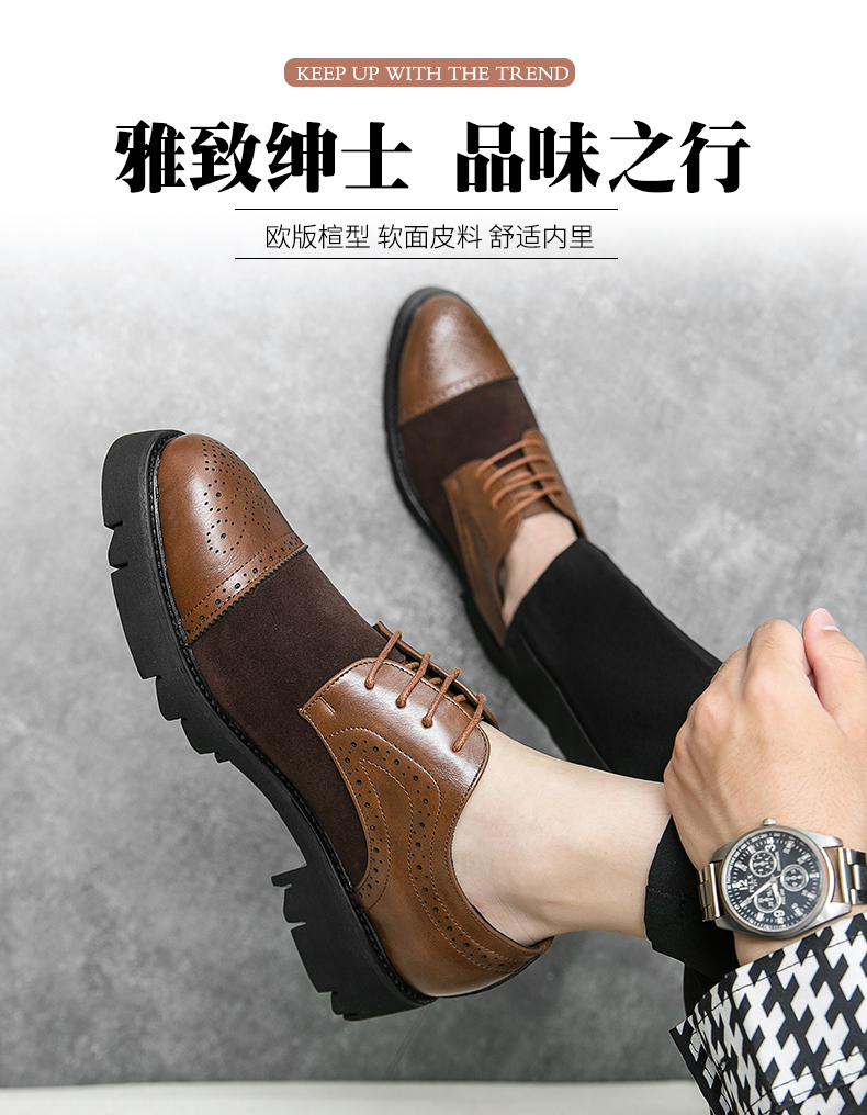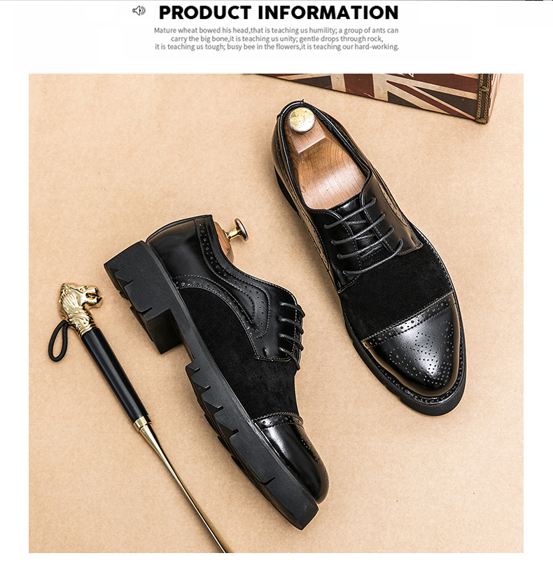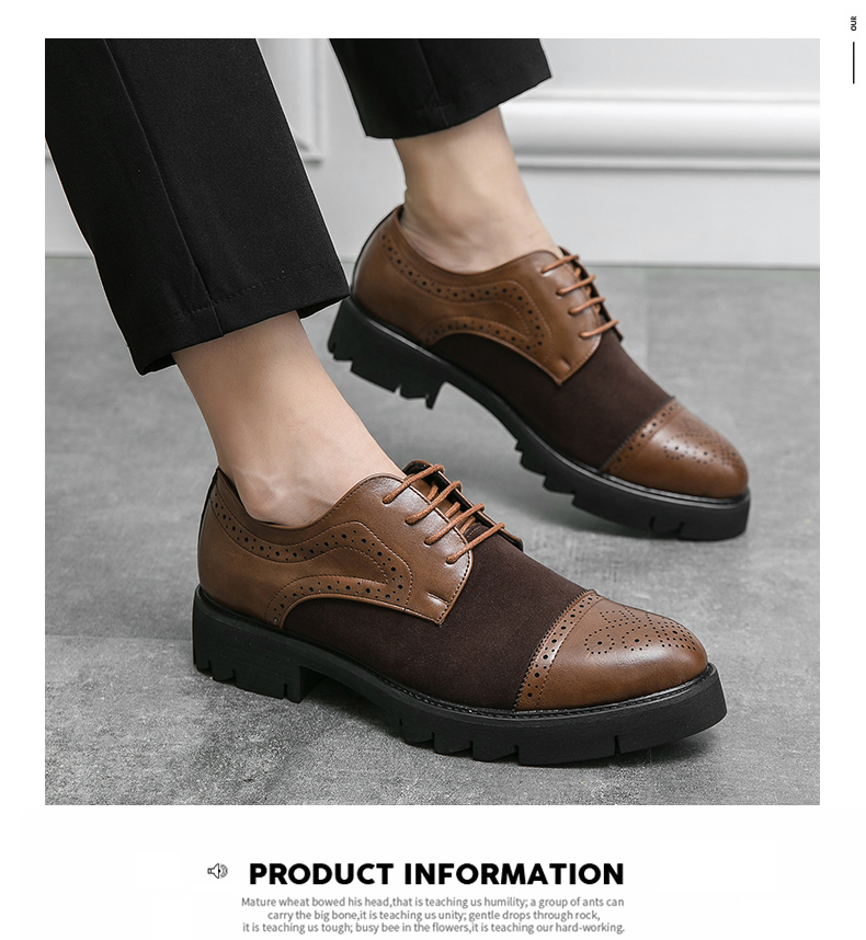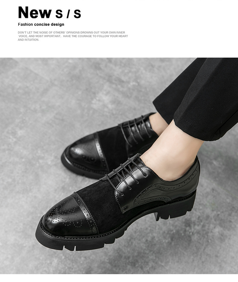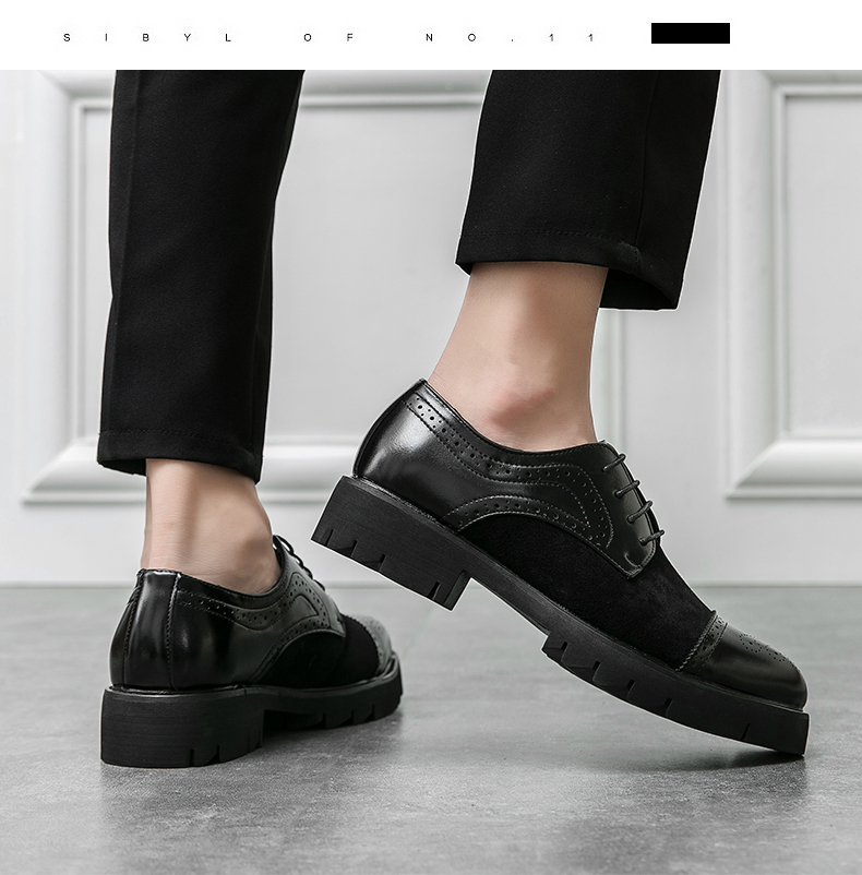 빈티지 영국 브록 조각 가죽 신발 남자의 비즈니스 원피스 캐주얼 모든 일치 두꺼운 단독 높이 증가 신랑 웨딩 신발