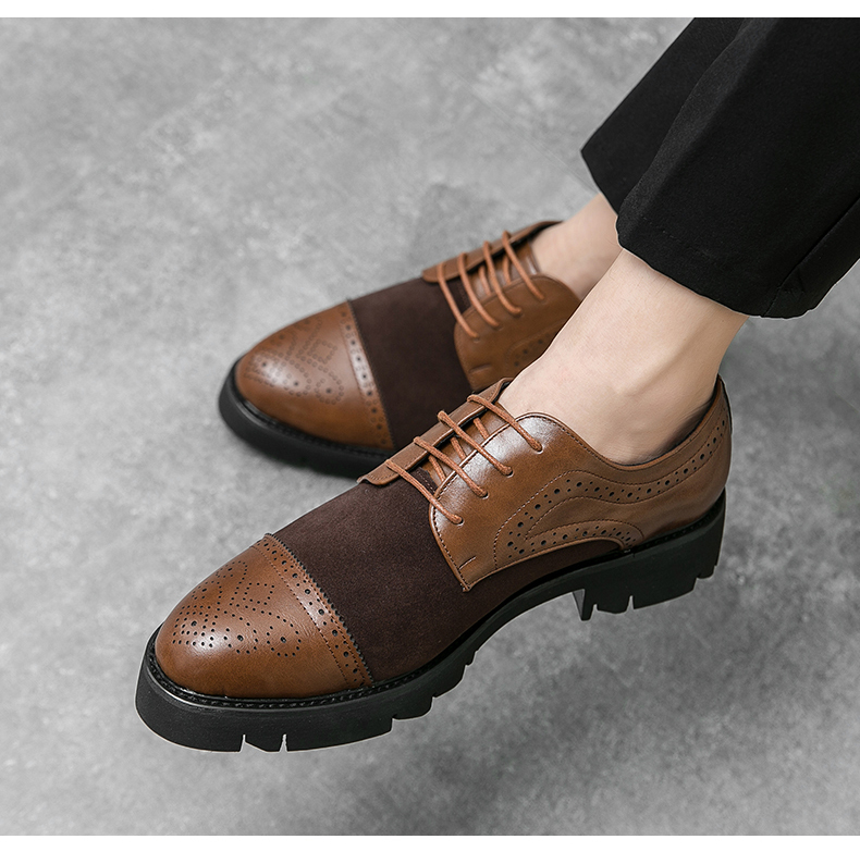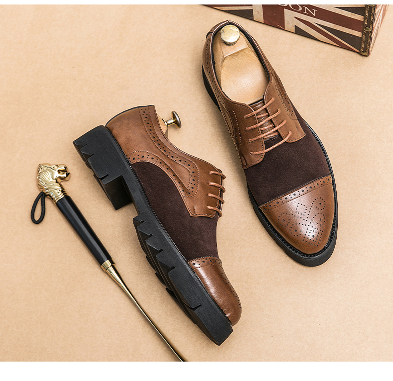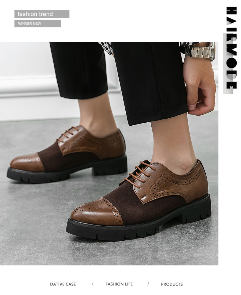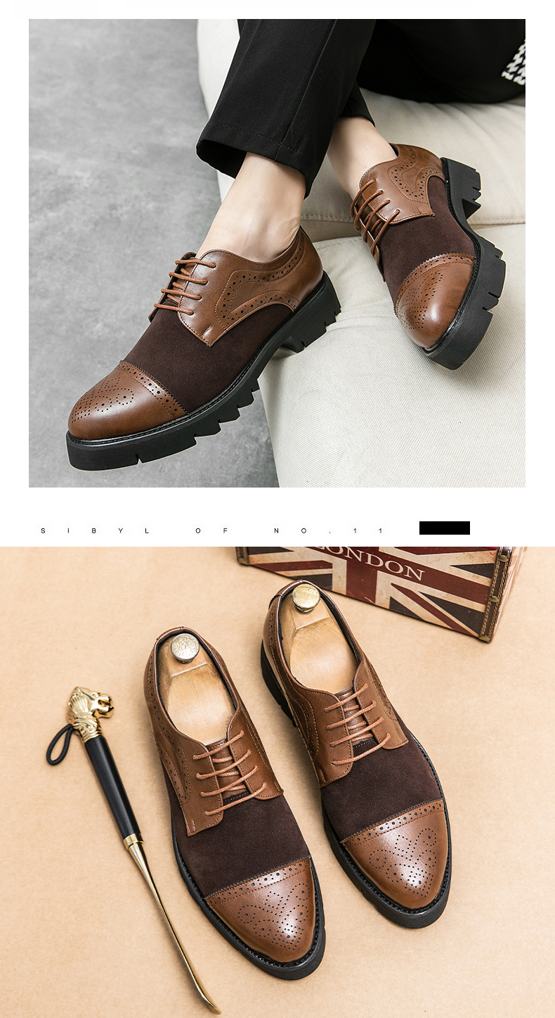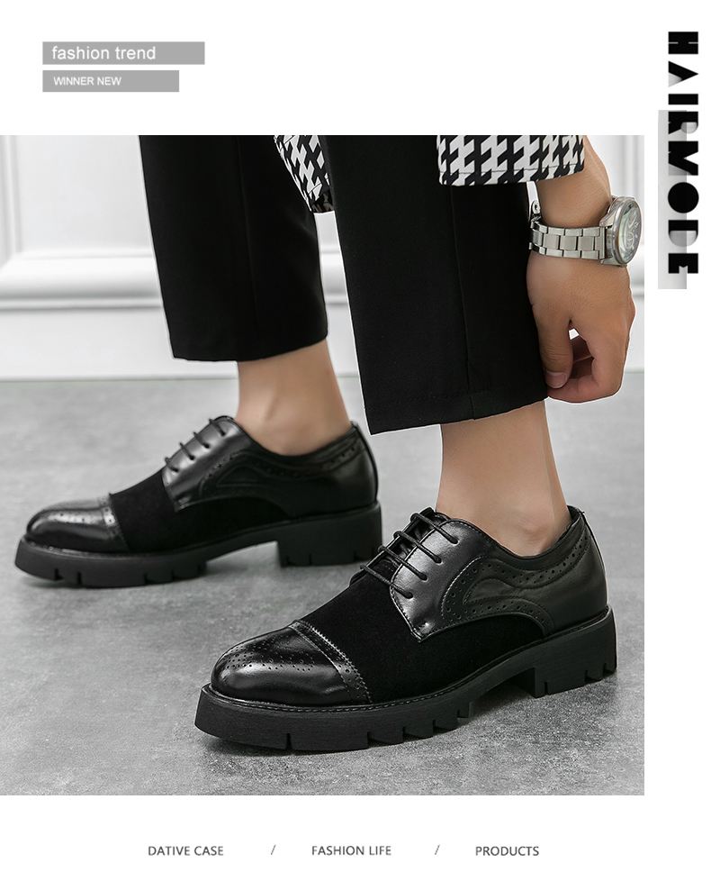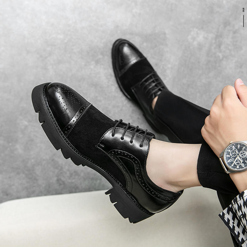 빈티지 영국 브록 조각 가죽 신발 남자의 비즈니스 원피스 캐주얼 모든 일치 두꺼운 단독 높이 증가 신랑 웨딩 신발