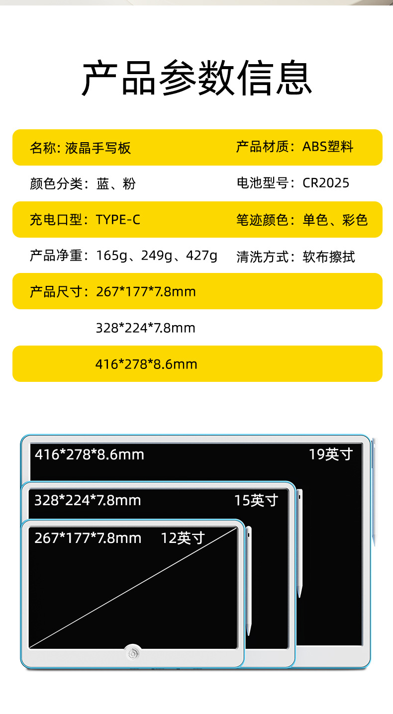 19inch LCD 필기 보드 그림 교육 가정용 대형 화면 컬러 전자 필기 보드 칠판 컬러 대형 화면