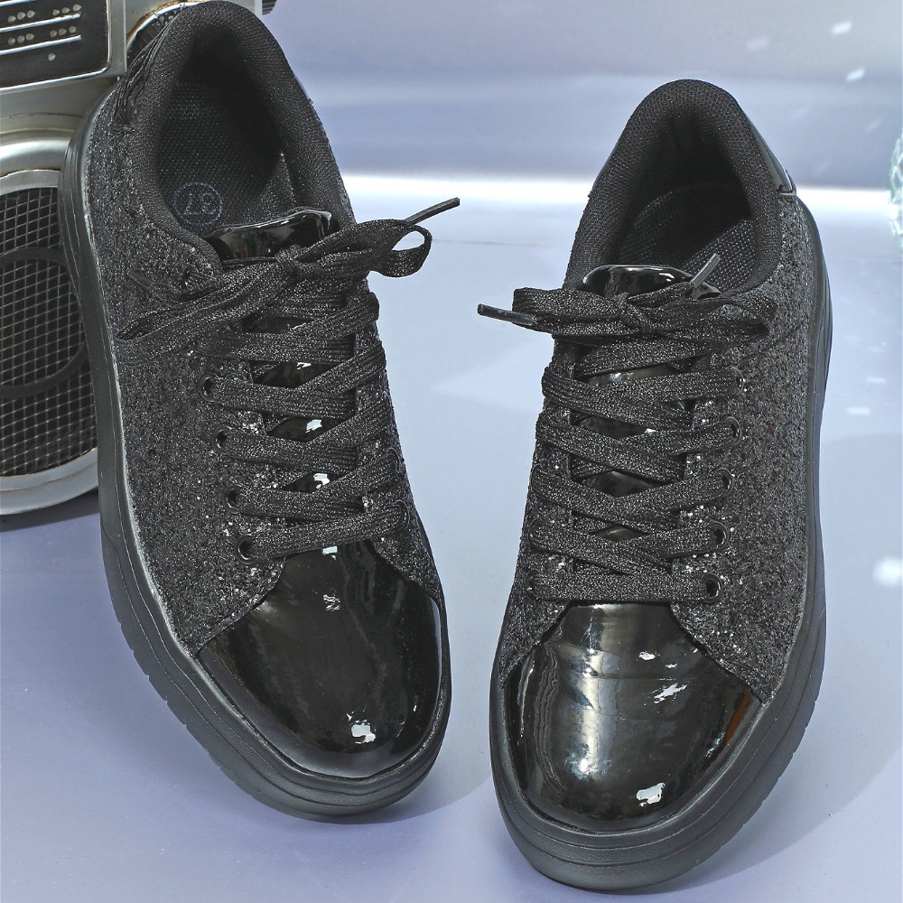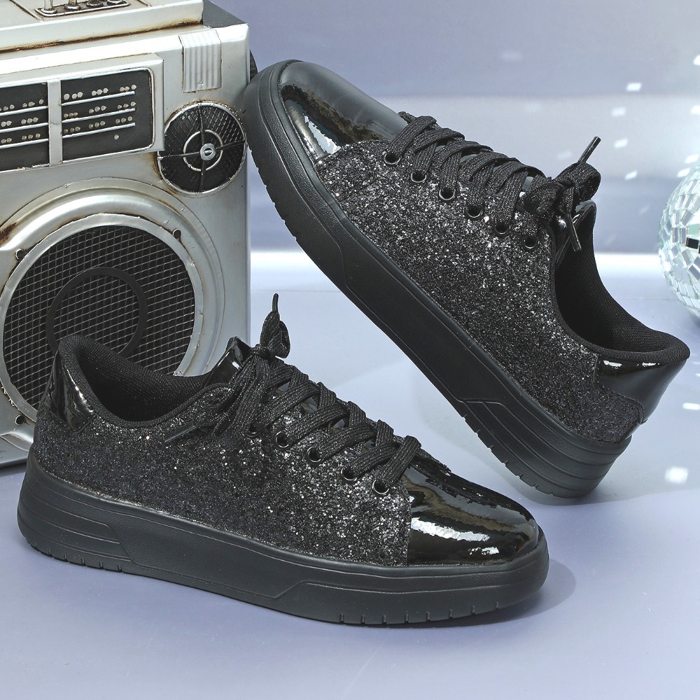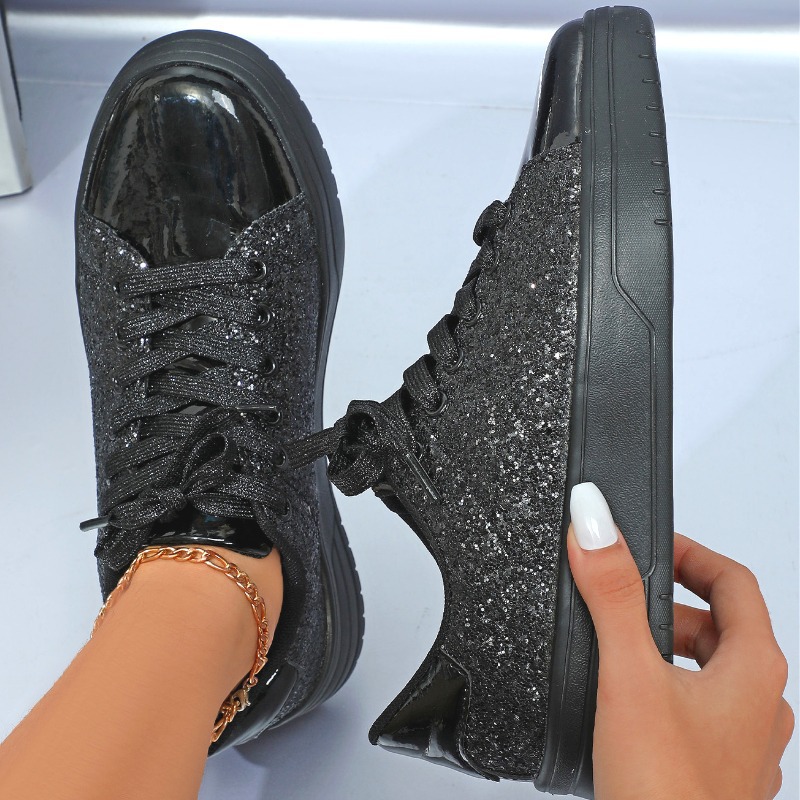 봄과 가을 트렌디 캐주얼 두꺼운 스니커즈 신상품 광택 유행 여성 신발 로우탑 레이스업 플랫 슈즈 커플 트렌디 신발스토어 가기