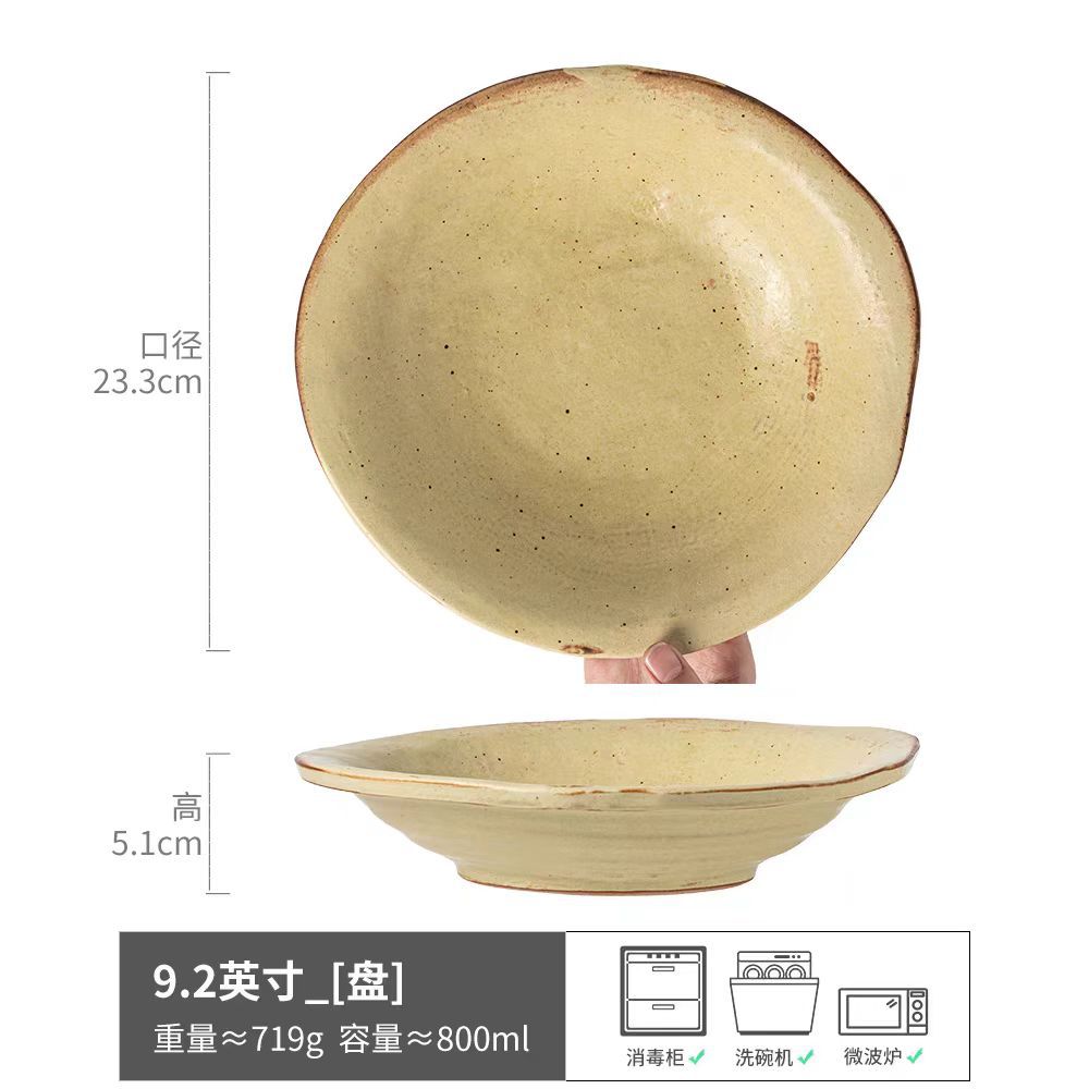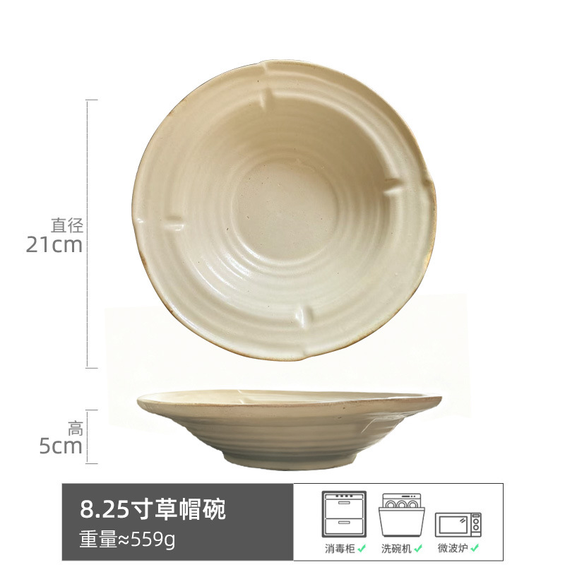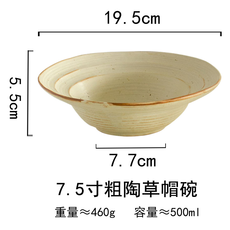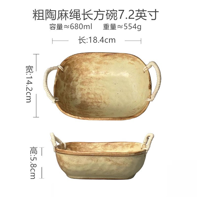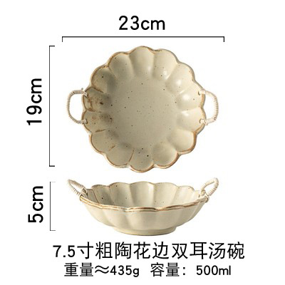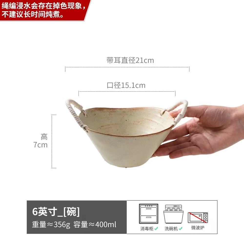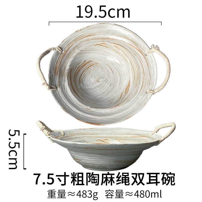 대마줄 이중 손잡이 도자기 그릇 일본식 레트로 빈티지 헝겊 모자 그릇 접시 파스타 그릇 가정용 국수 그릇 수프 그릇