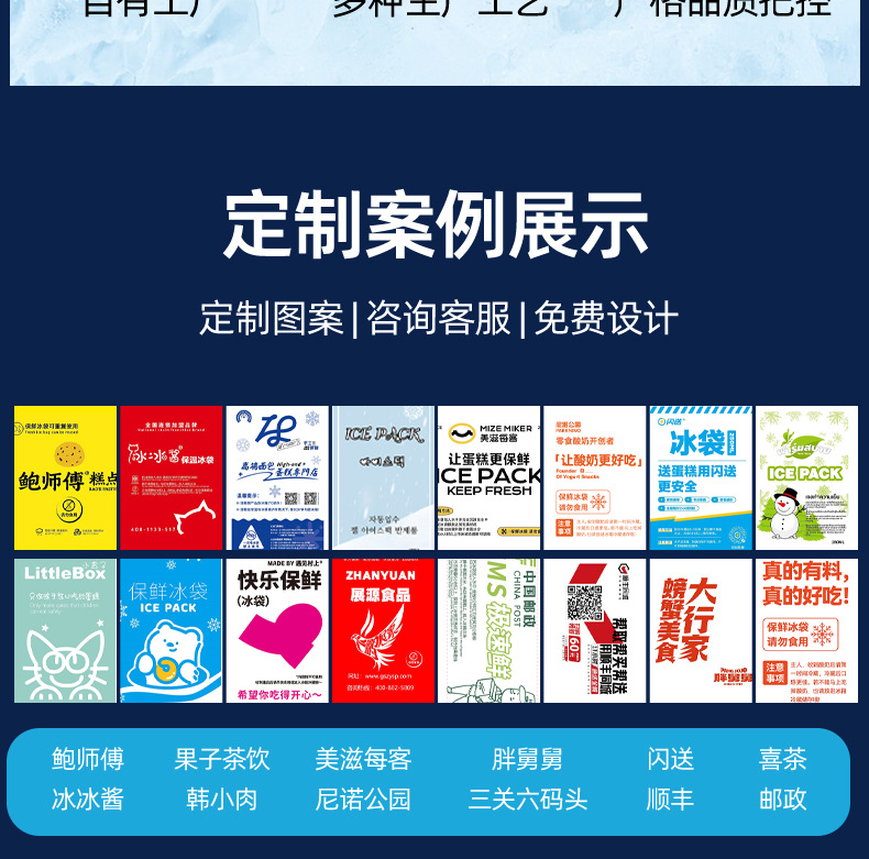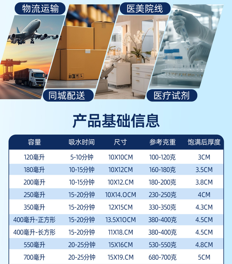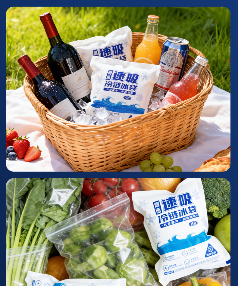 측면 흡수형 양면 자동흡수 일회용 신선도 유지 특수 배송용 무급수 신선식품 항공 아이스팩 소형 아이스백