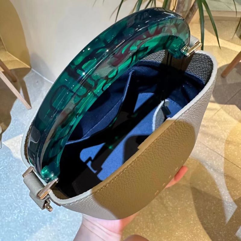 새로운 MINI MINI 수지 핸들 백 헤드 레이어 소가죽 버킷 백 숄더 크로스바디 핸드백