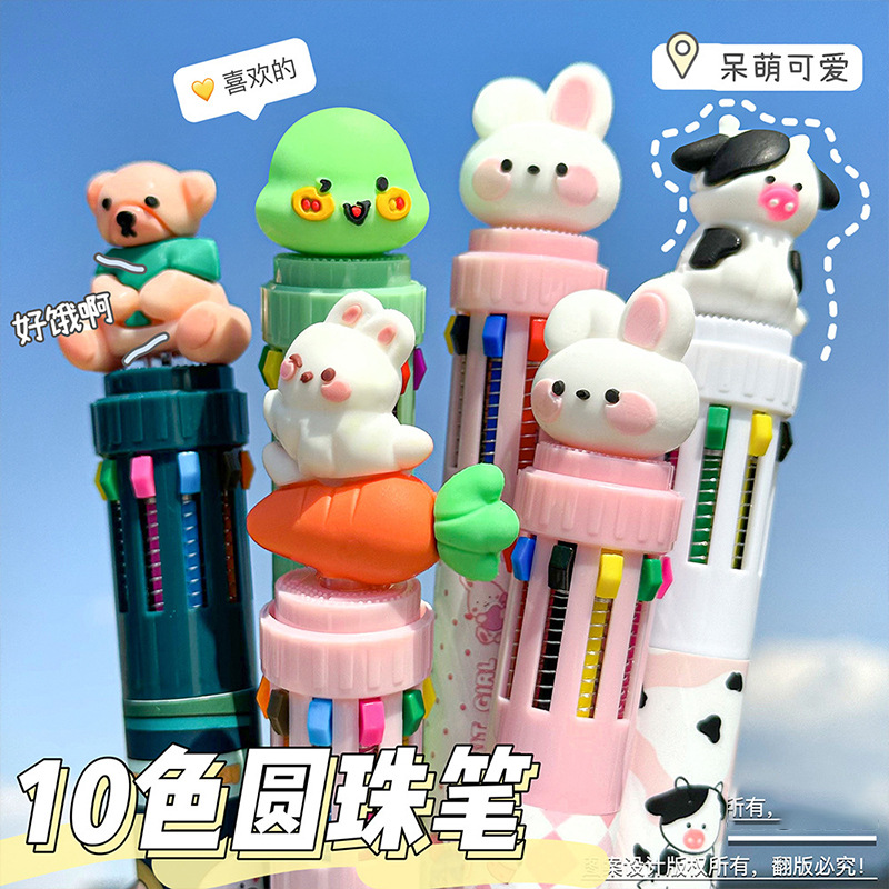 다색 볼펜 귀여운 10색 중성펜 클릭형 볼펜 만화 초등학생용 유성펜 다채로운 필기용
