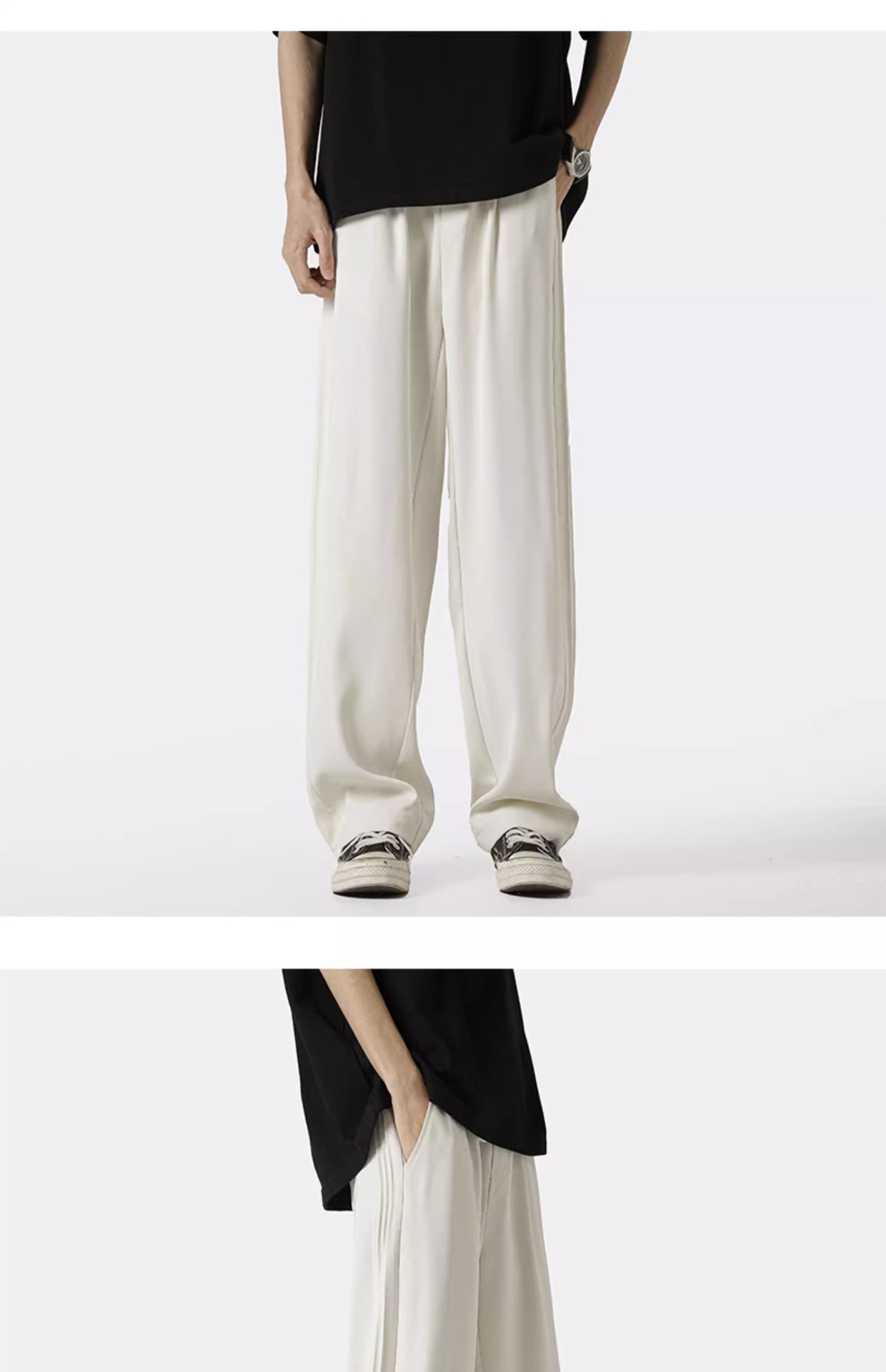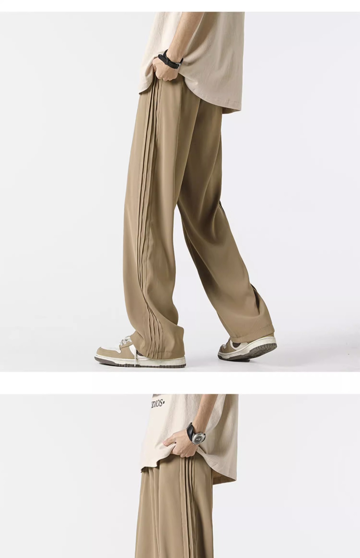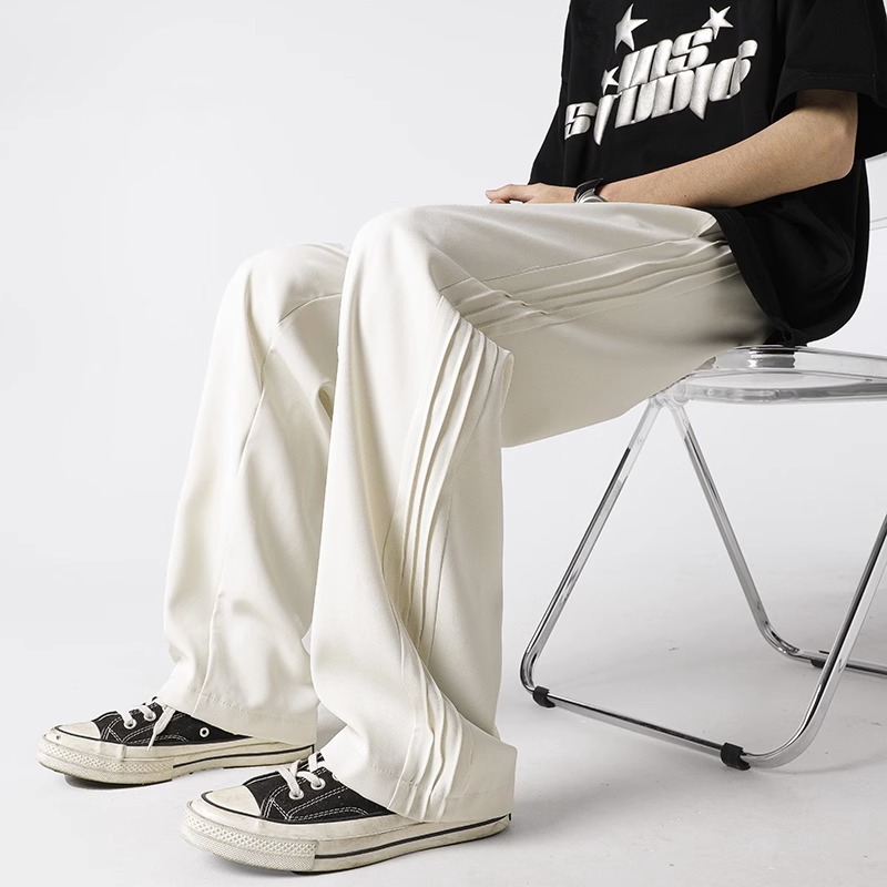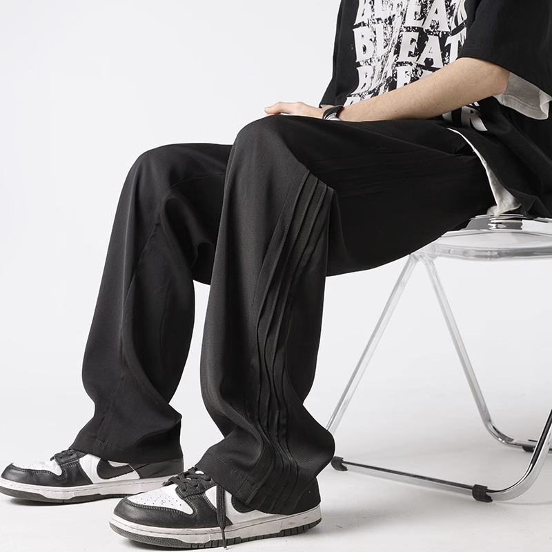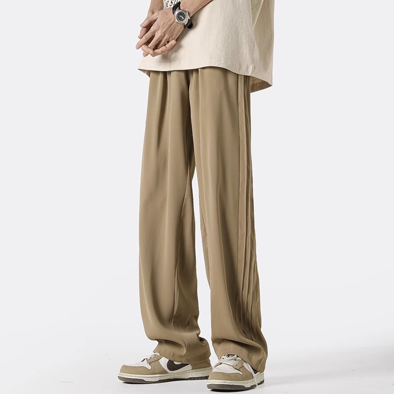 아메리칸 스타일 스트라이프 아이스 실크 팬츠 남성용 여름 트렌디 브랜드 하이 스트리트 세로 스트레이트 플로어 팬츠 와이드 루즈한 캐주얼 팬츠스토어 가기